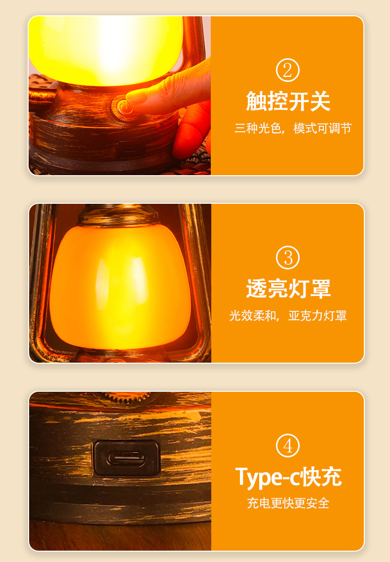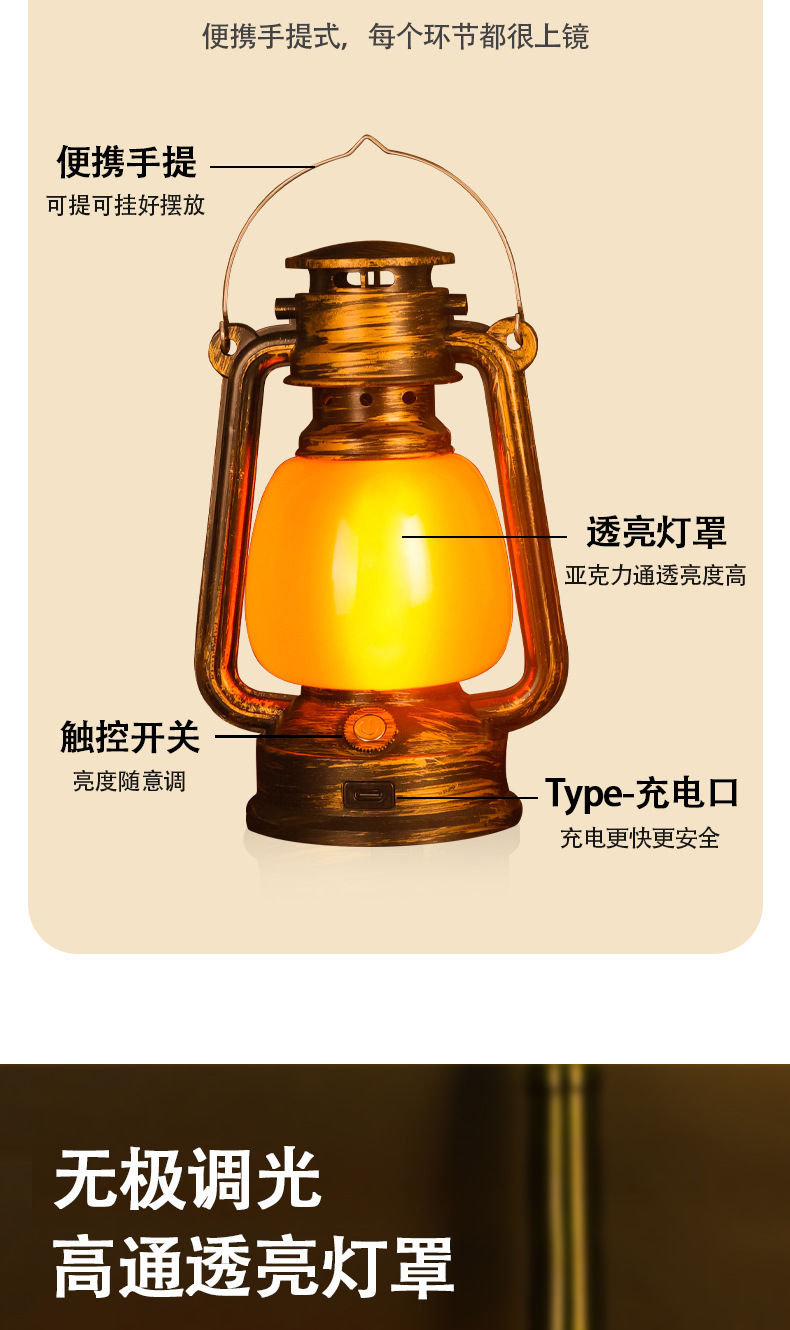 露營燈戶外小號馬燈充電手提LED煤油燈馬燈酒吧桌燈酒店民宿台燈