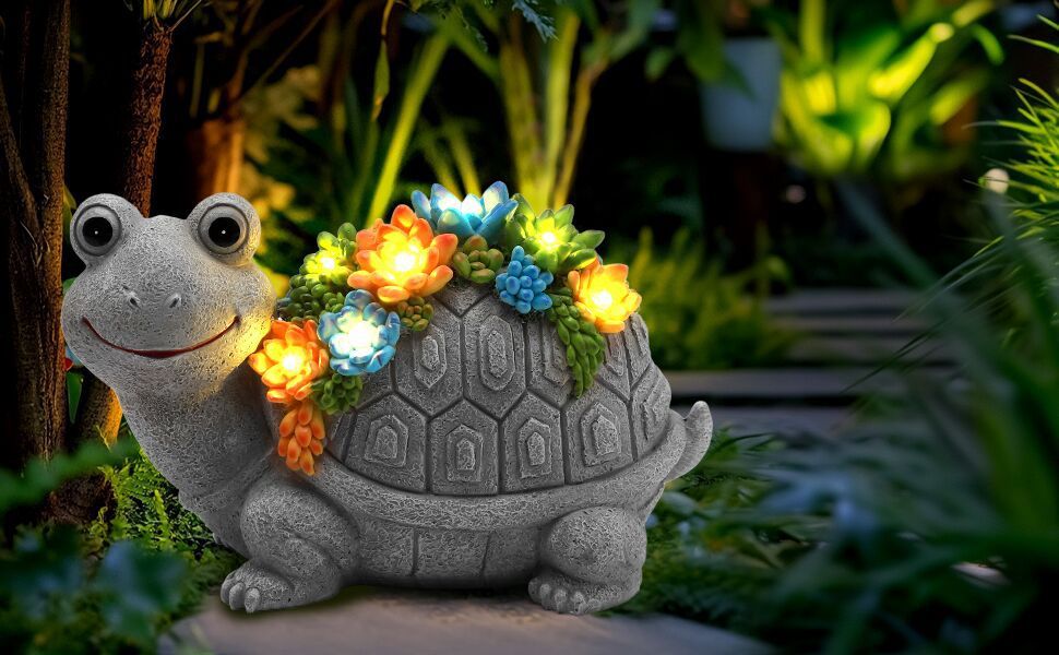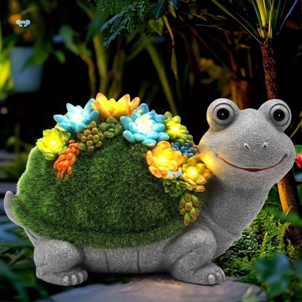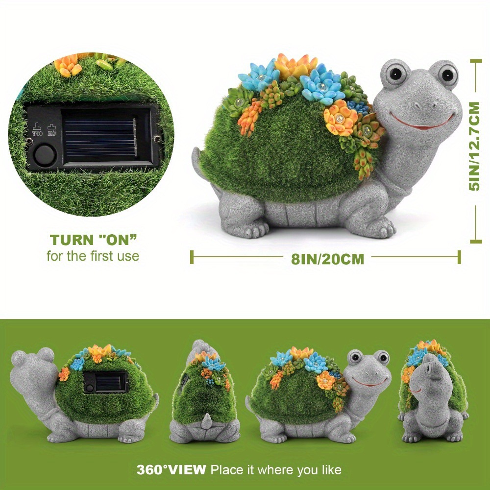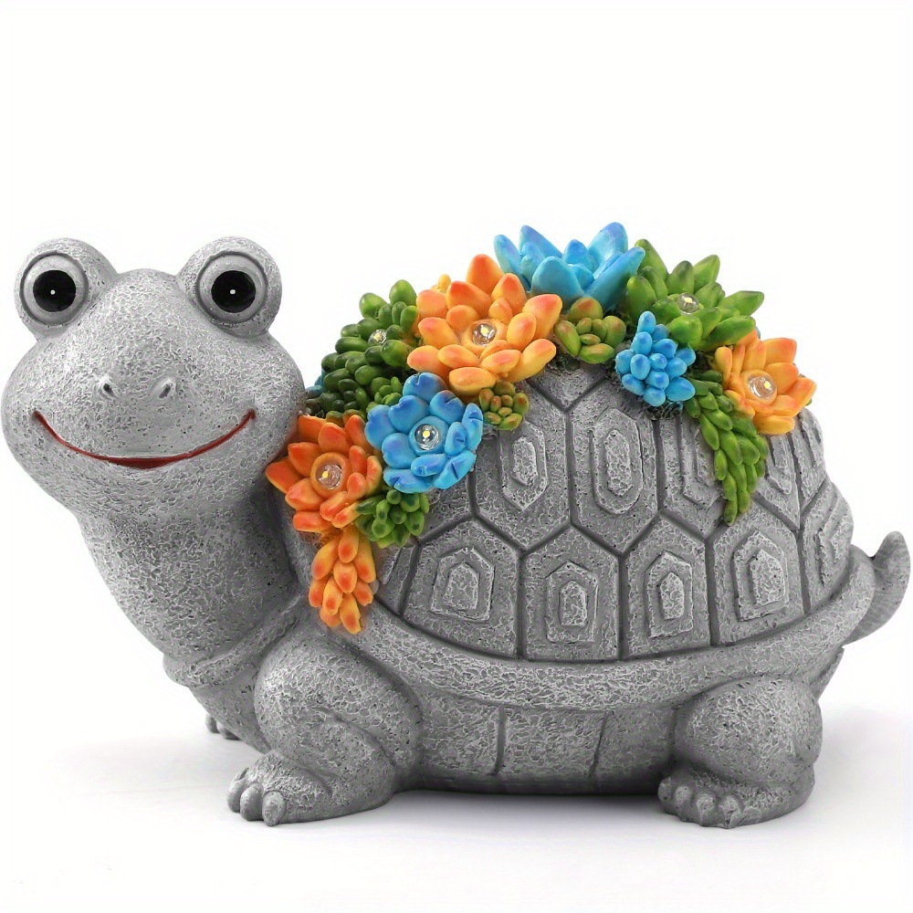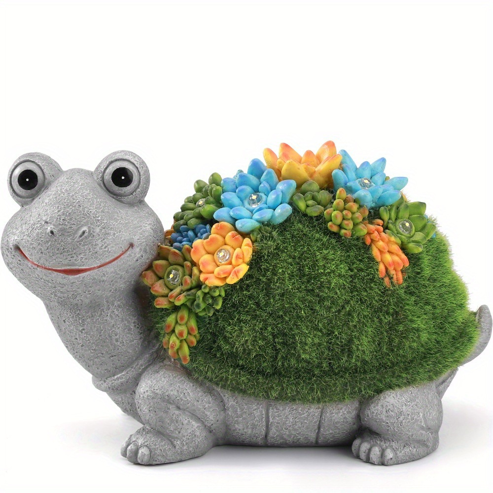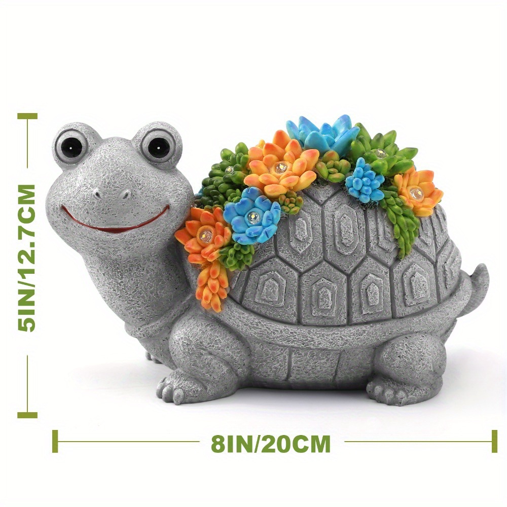 Solar Powered Colorful Resin Turtle Statue with Succulent