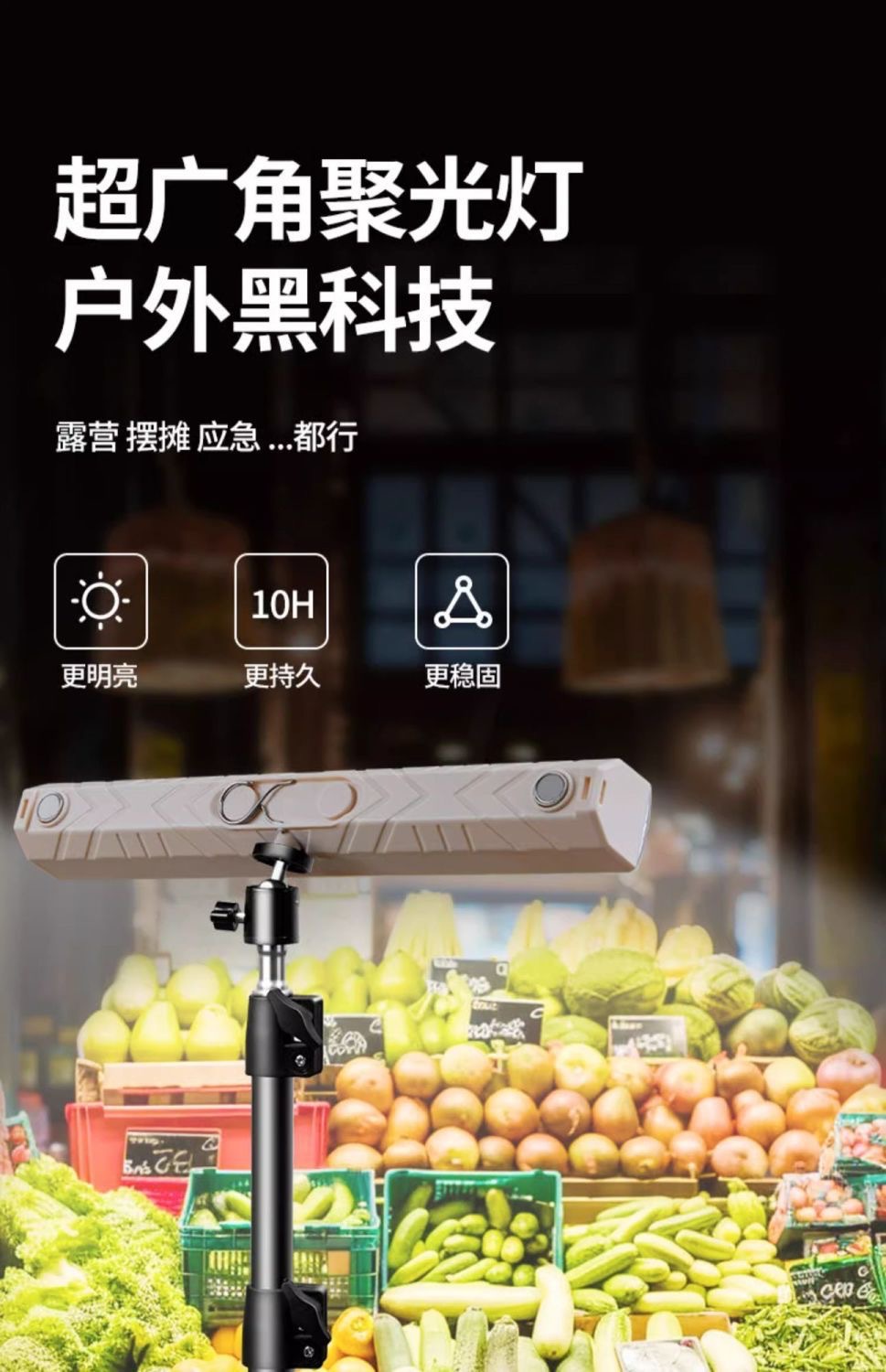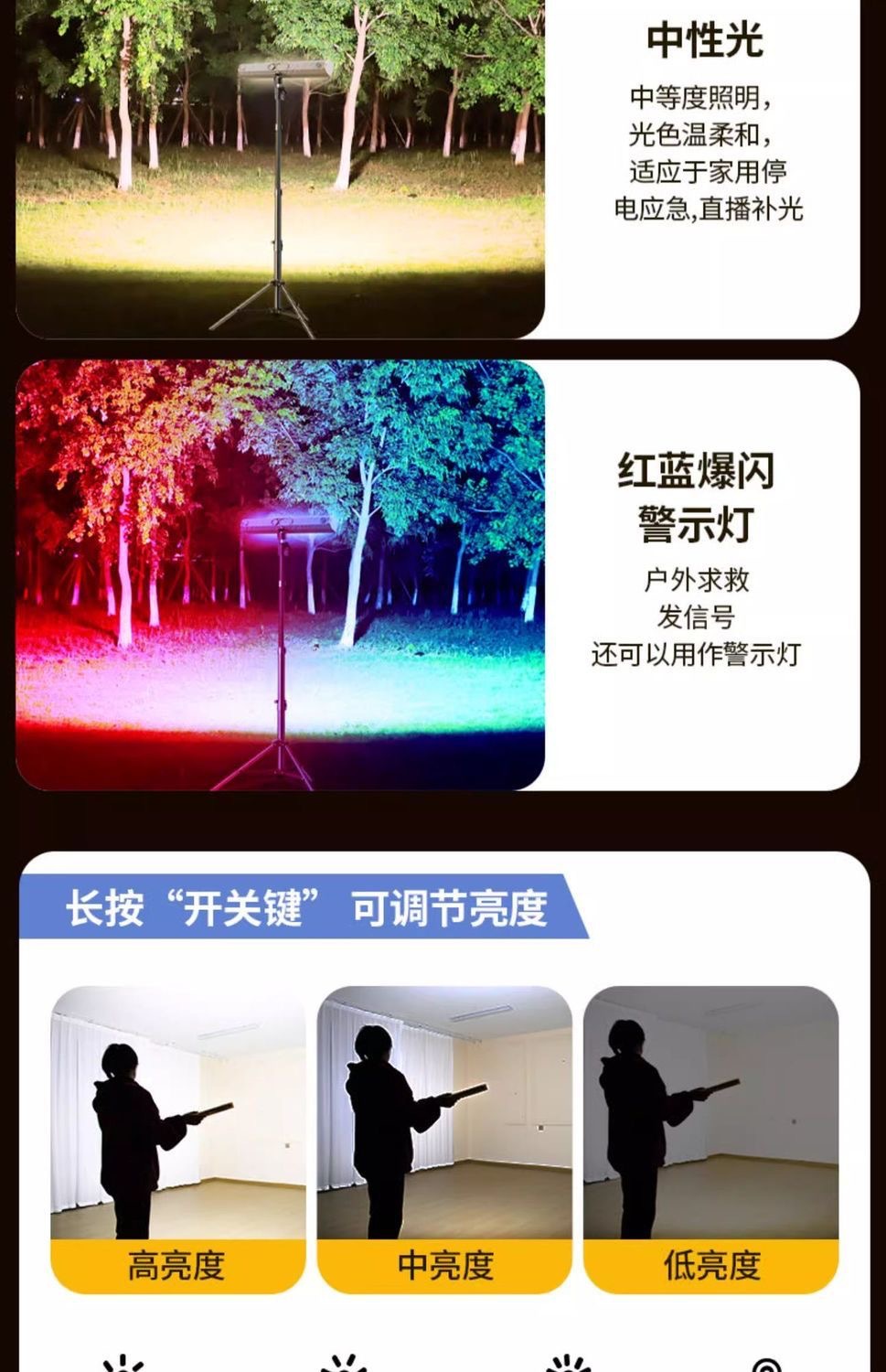 | 顔色 | 戶外擺攤露營顯示充電五檔爆閃戶外燈:42CM+支架 |