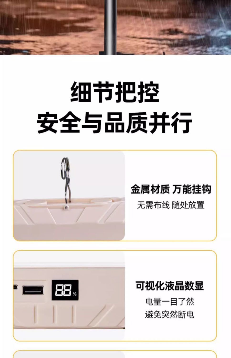 | 規格 | 高亮顯示充電戶外燈 |