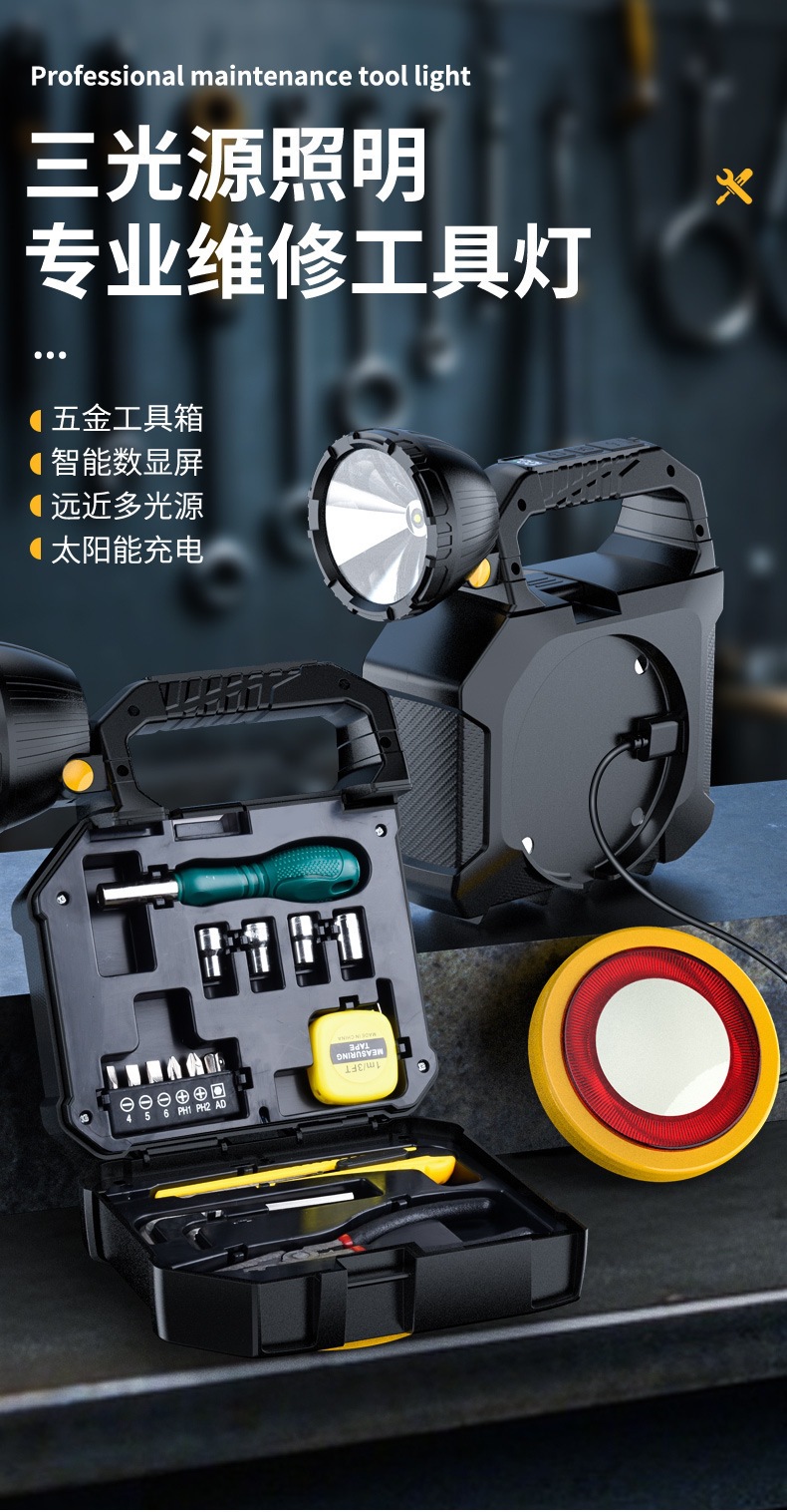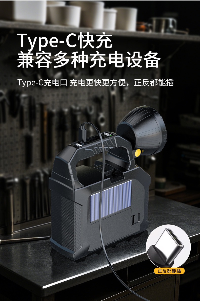 太陽能手提燈內置工具包戶外燈USB充電應急燈大功率探照燈
