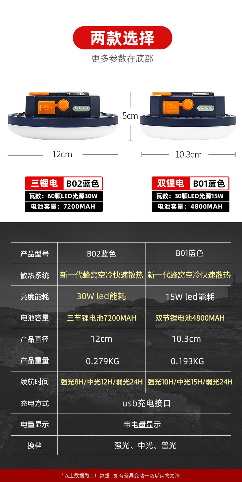 | 光源 | 白光三檔調節/S0S紅光頻閃 |