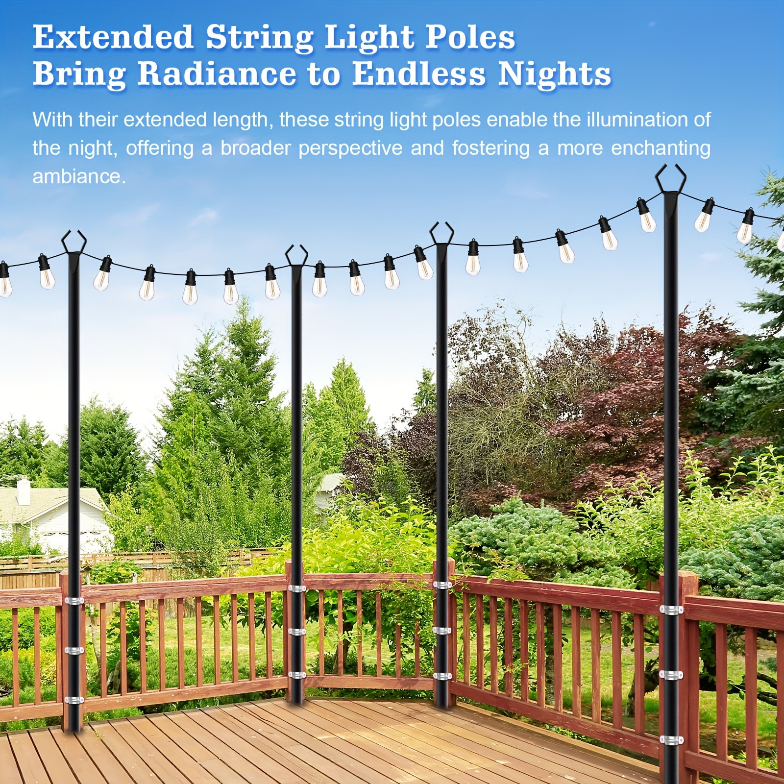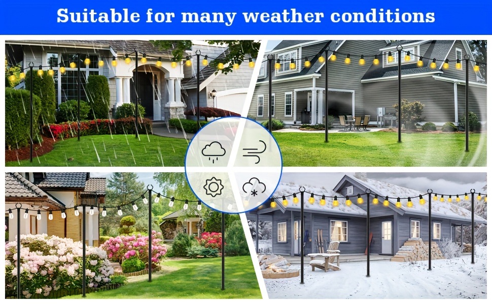 4 Pack 10FT Outdoor String Lights, Waterproof RigID Metal