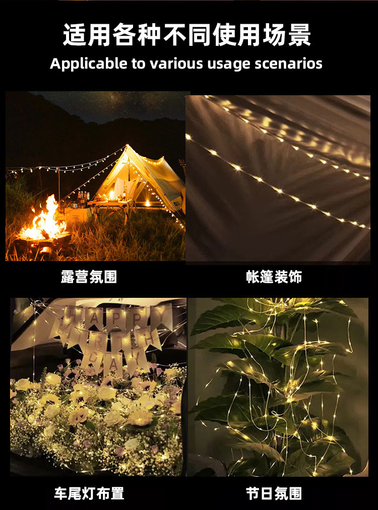 爆款LED卷尺燈多功能露營燈帳篷天幕彩光氛圍燈戶外防水串燈