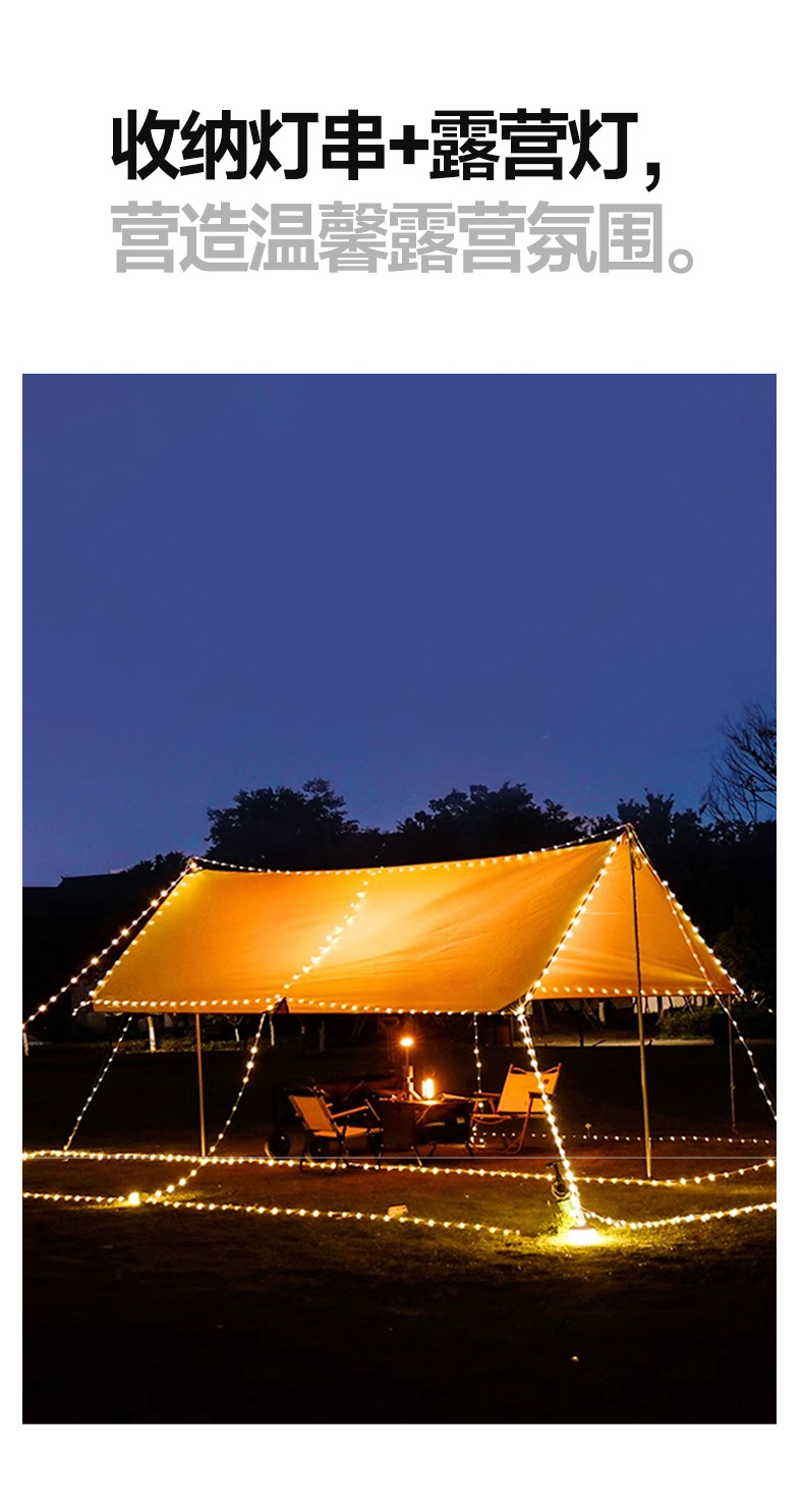戶外露營卷尺燈20米燈串野營天幕帳篷氛圍燈USB充電派對LED裝飾燈