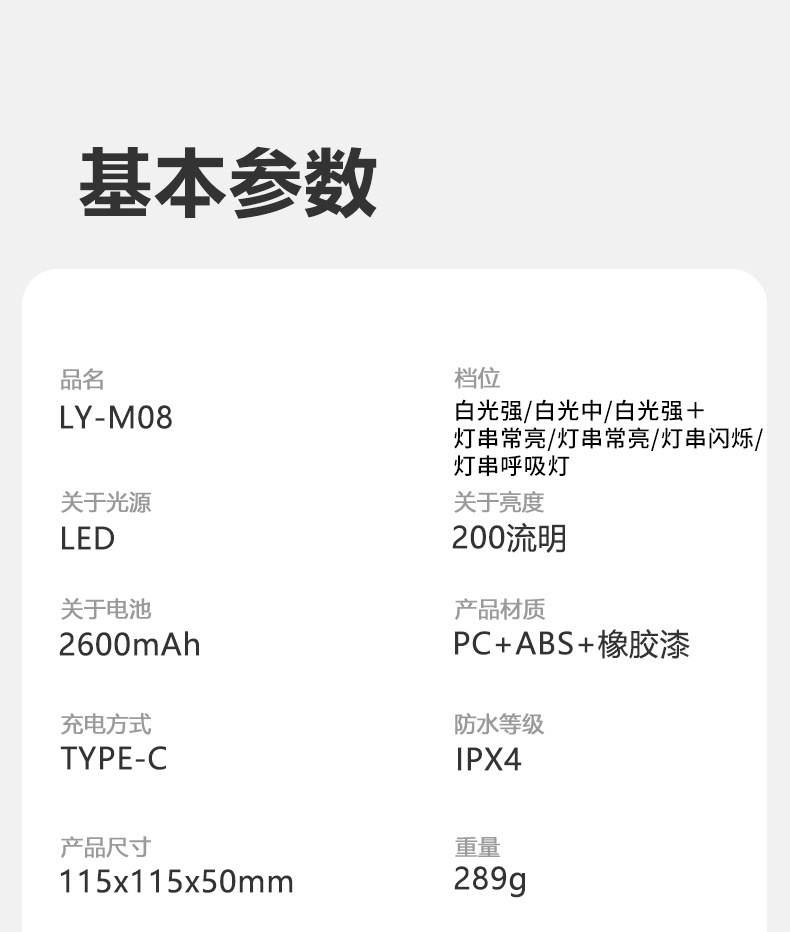 | 顔色 | 20米暖光(2600mAh+照明白光) |