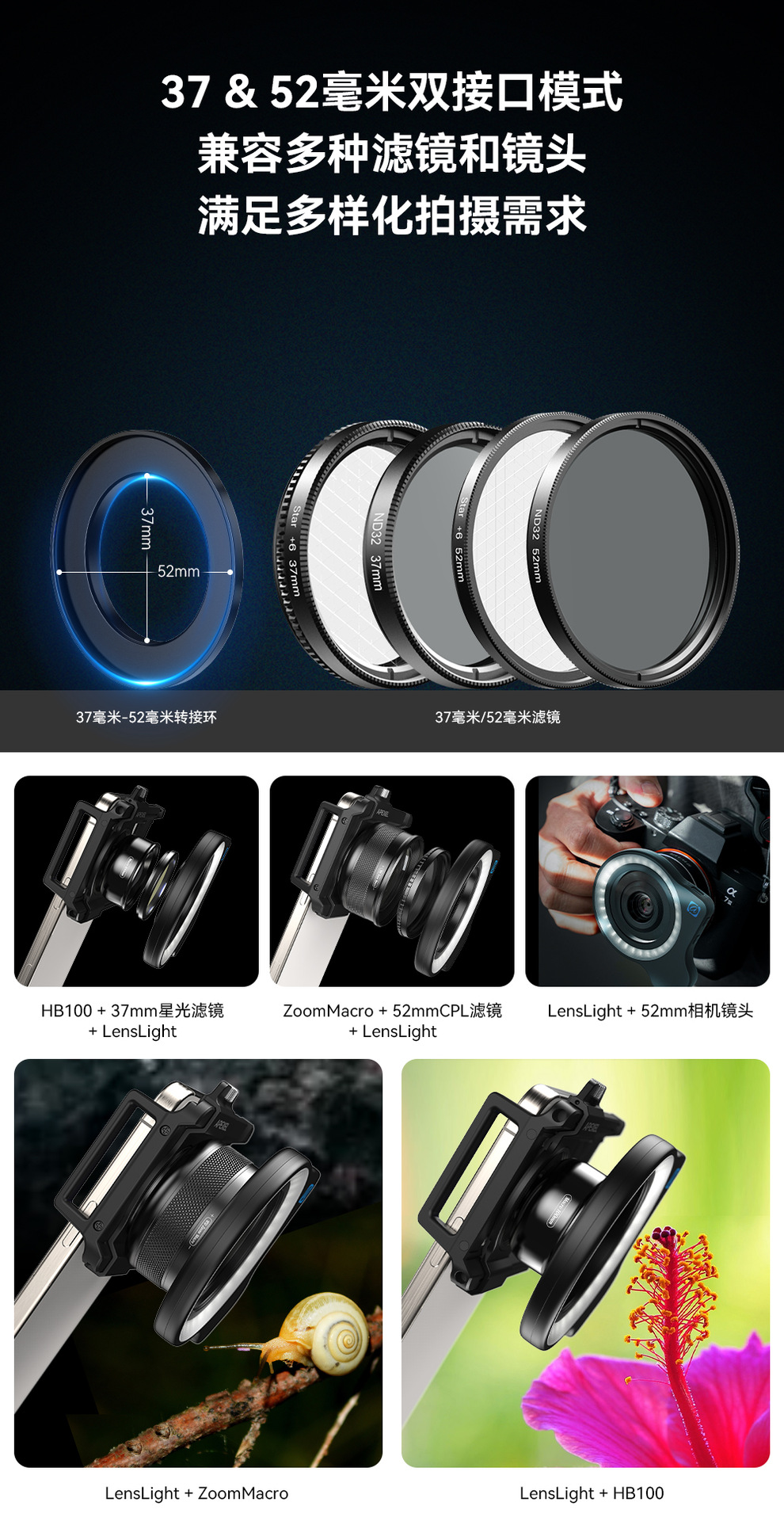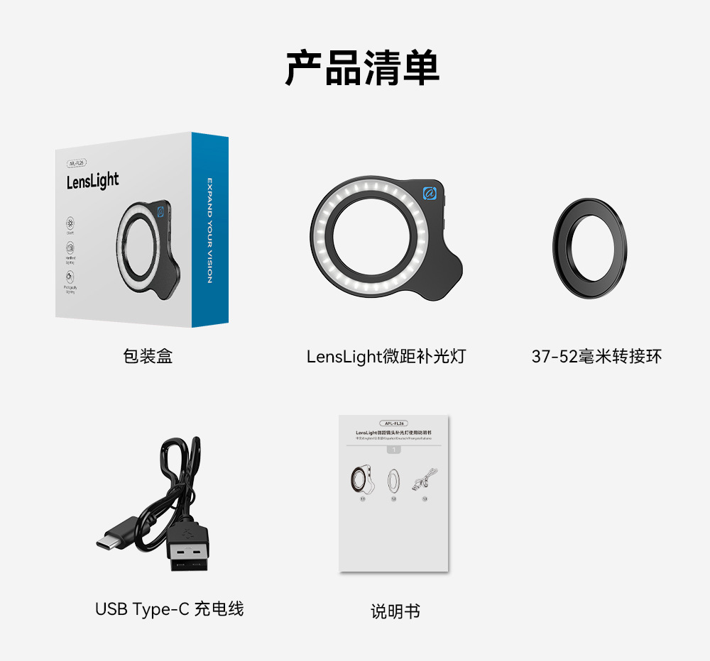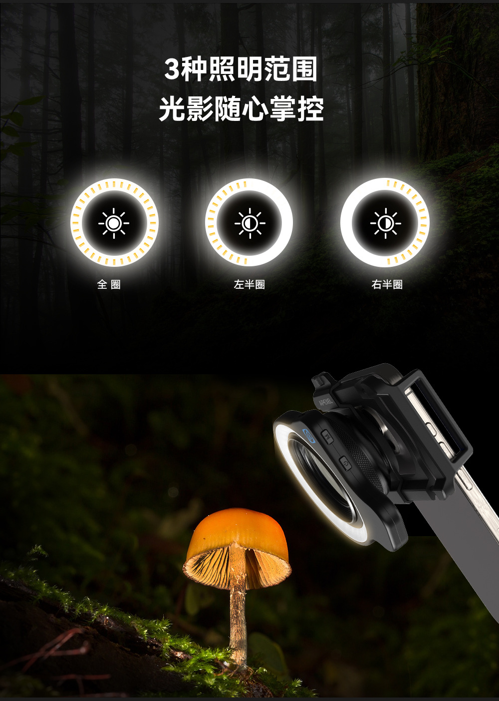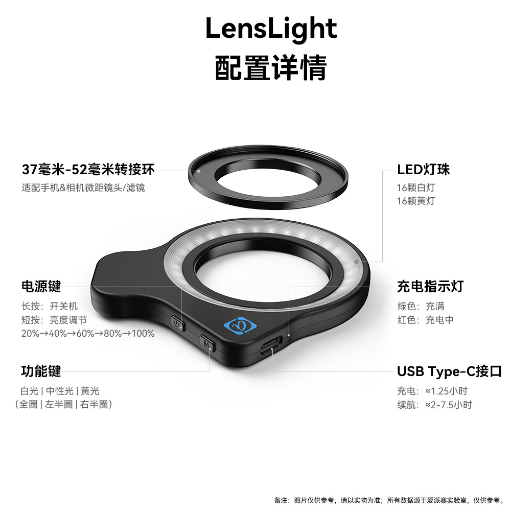 APEXEL 手機微距補光燈美甲美瞳拍照珠寶鑒定補光燈37-52mm螺紋接
