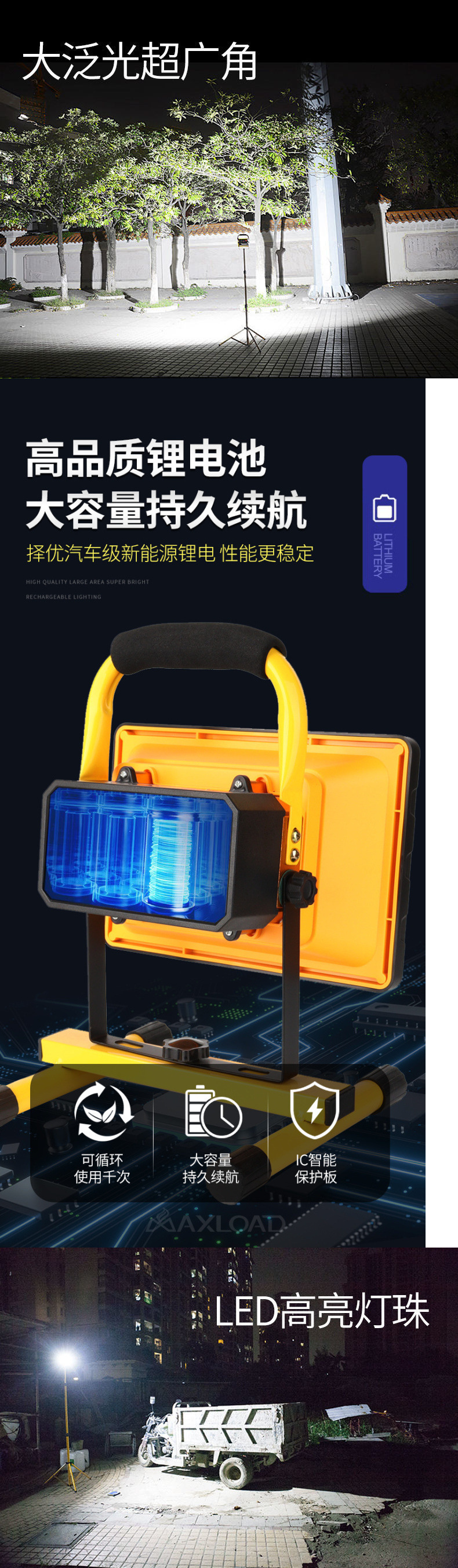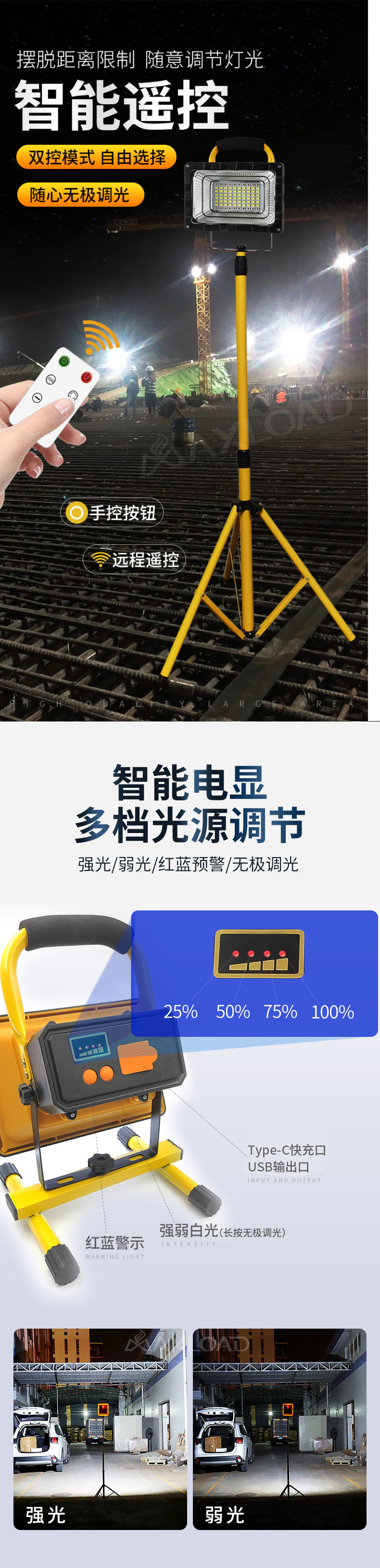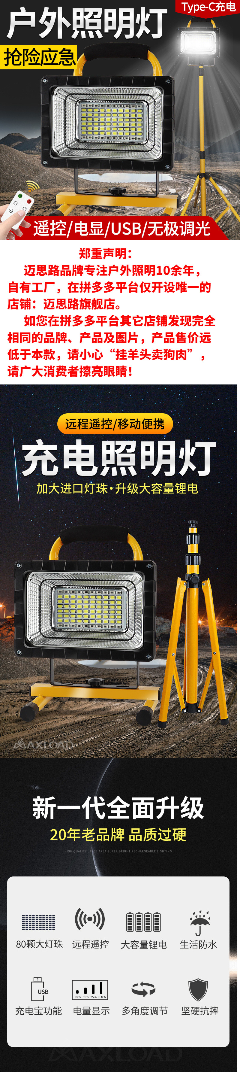 充電可攜式戶外照明燈超亮移動可攜式工地燈手提大功率超長續航投光燈