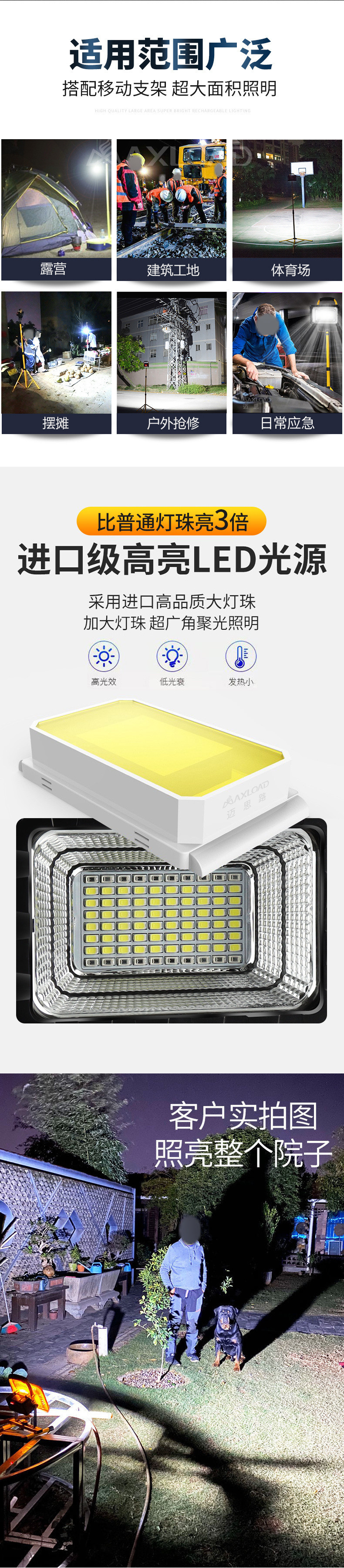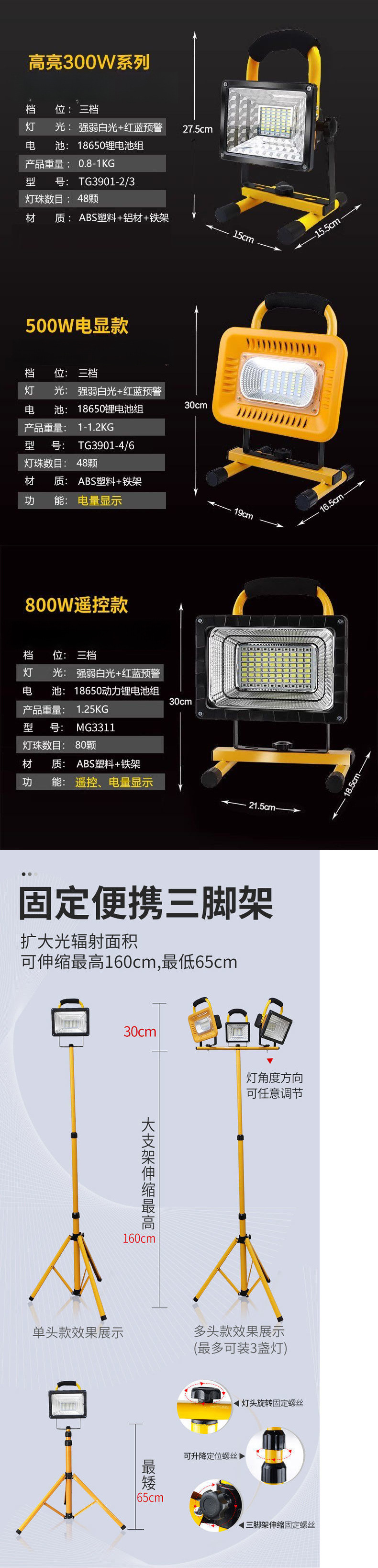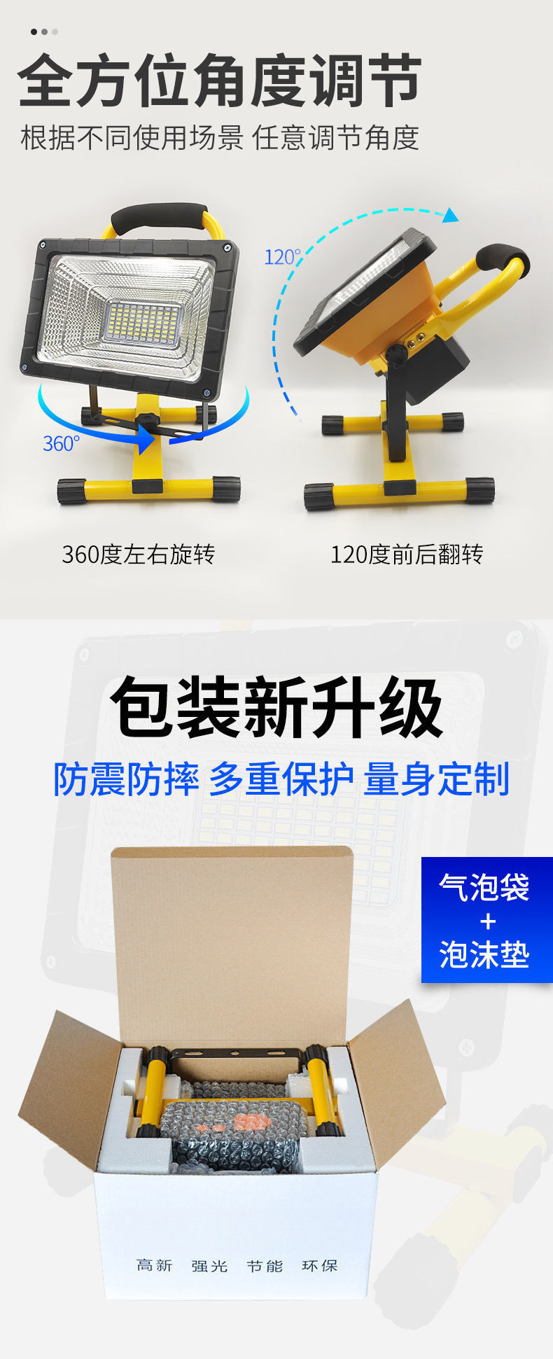 充電可攜式戶外照明燈超亮移動可攜式工地燈手提大功率超長續航投光燈