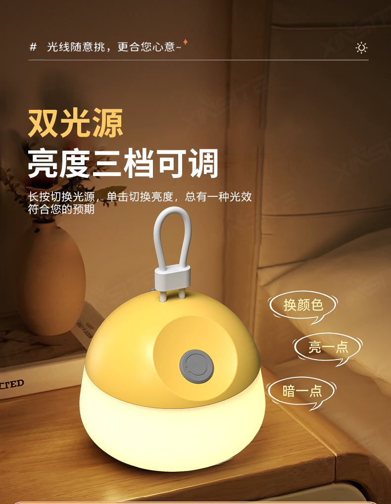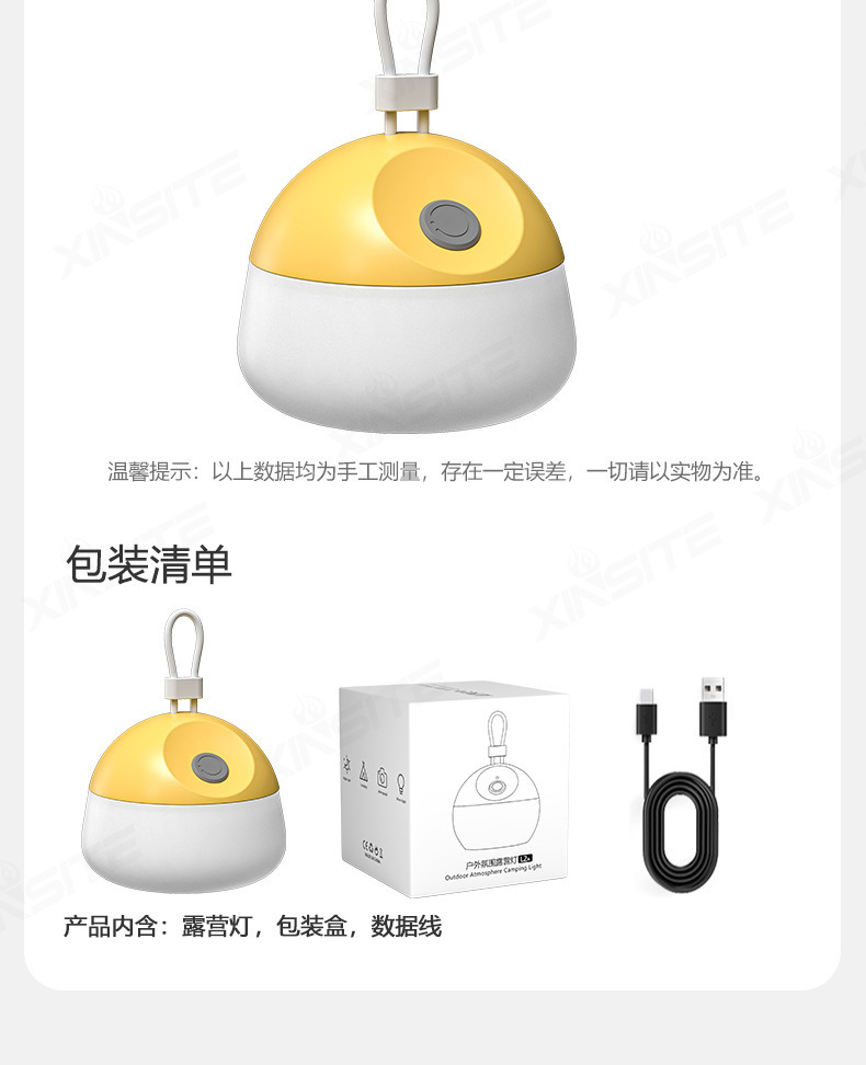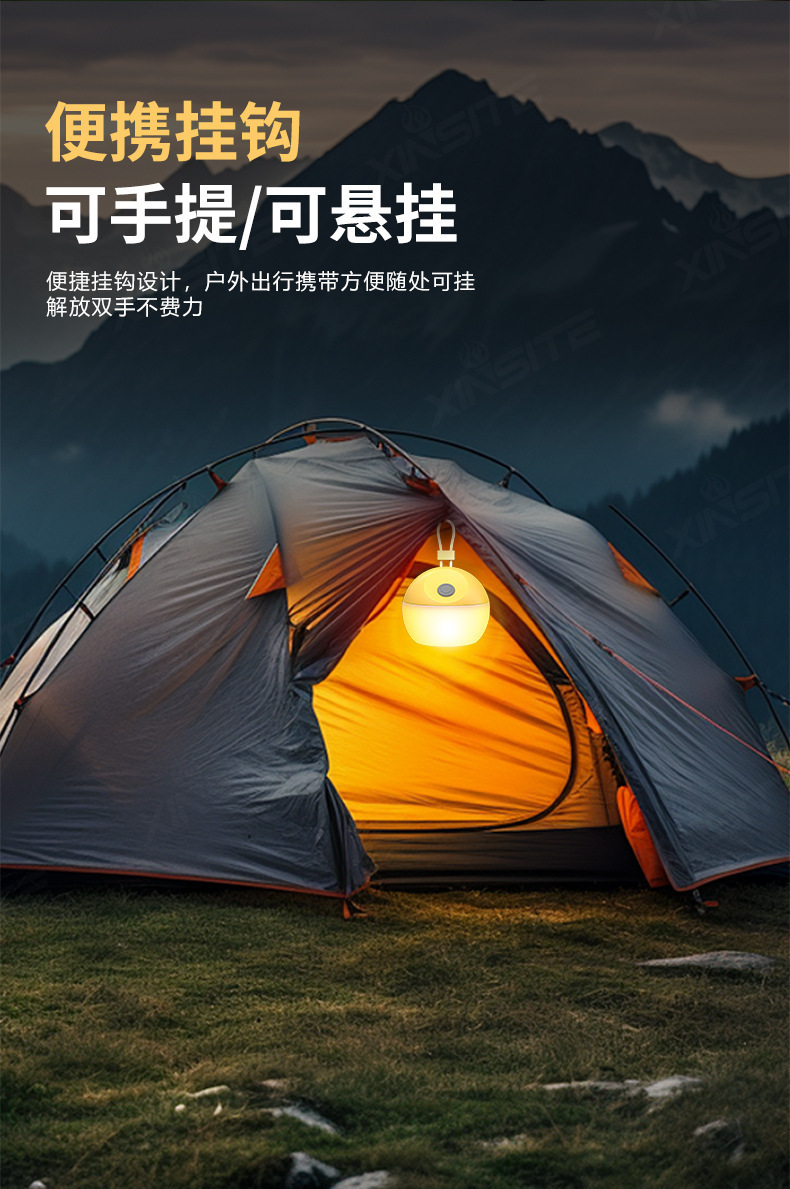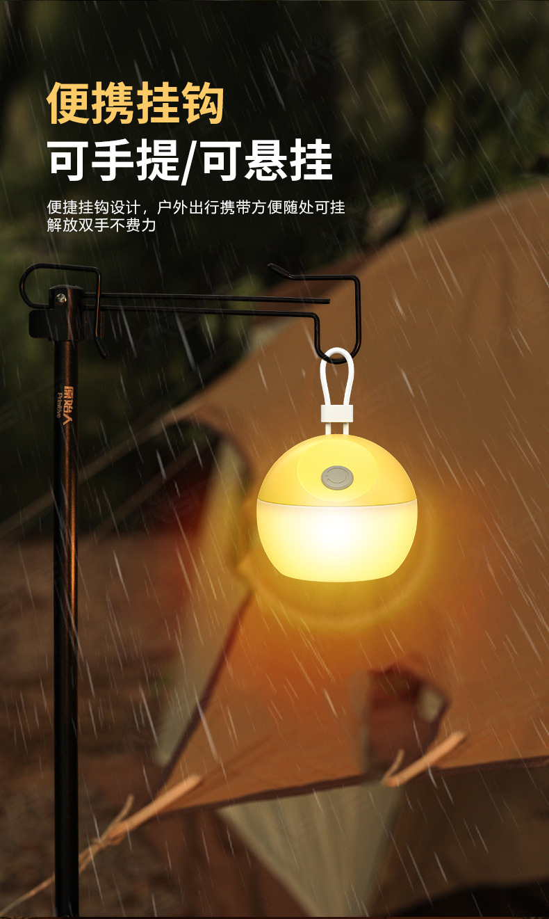 戶外白光露營燈野營帳篷可攜式照明長續航黃光氛圍燈矽膠可充電柔光