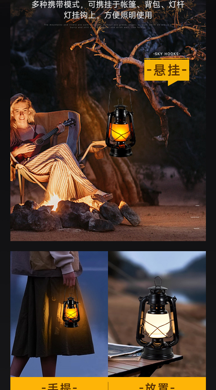 露營燈戶外充電復古馬燈營地野營氛圍煤油手提擺攤帳篷燈裝飾火焰
