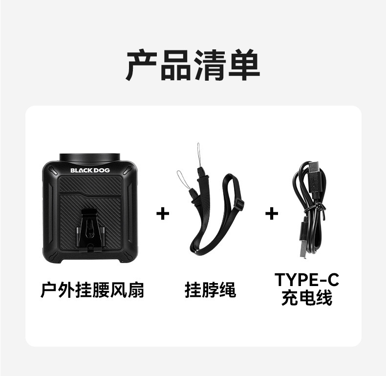 Blackdog黑狗戶外新款隨身風扇燈可攜式夾腰消暑降溫神器長續航