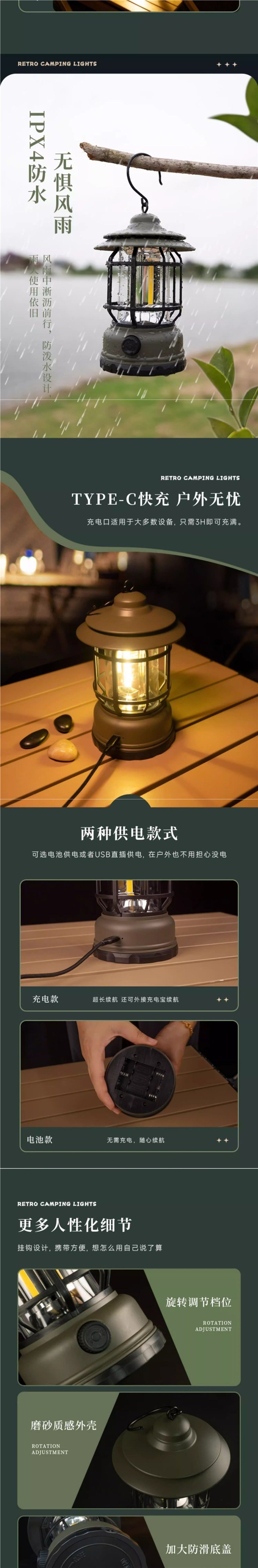 復古露營燈馬燈帳篷野營營地戶外充電氛圍野外照明燈掛式超長續航