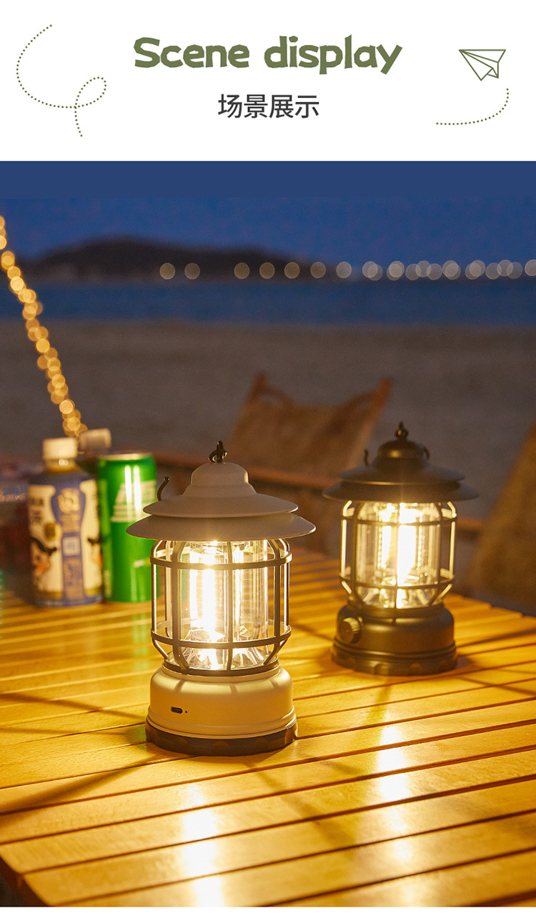 露營燈戶外充電復古馬燈營地燈野營氛圍燈手提帳篷燈裝飾火焰道具