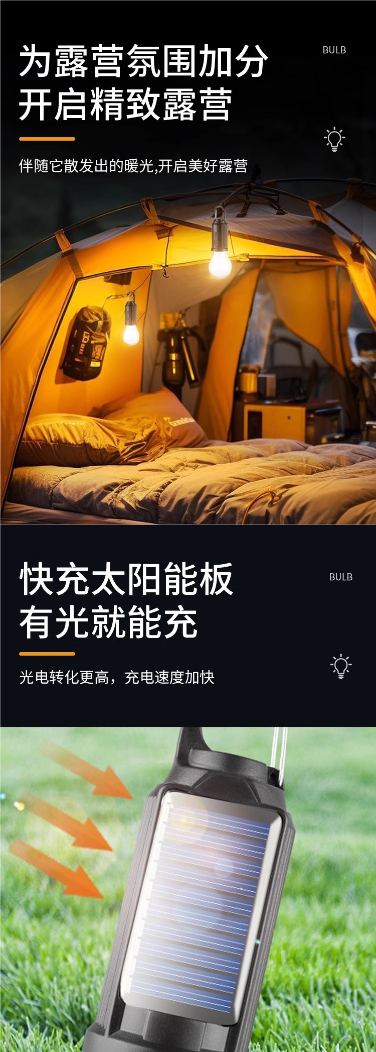 新款戶外露營燈太陽能充電款超長續航復古氛圍多功能可攜式帳篷野營