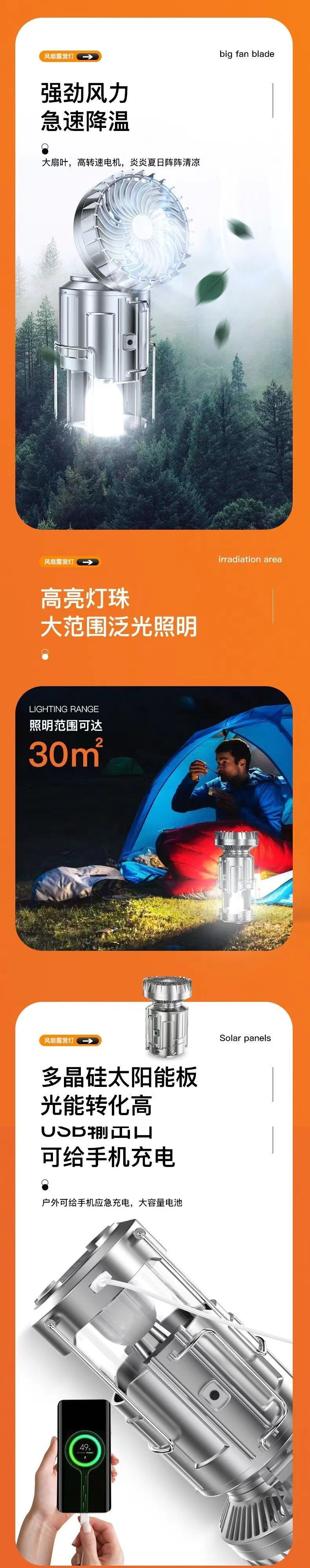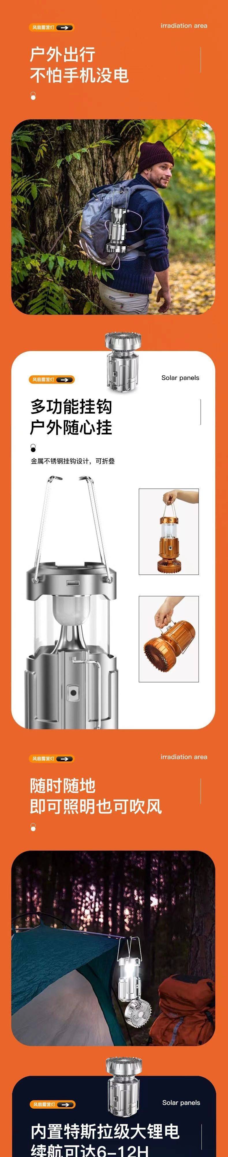 太陽能多功能戶外風扇露營燈可充電馬燈LED帳篷燈停電應急燈可掛