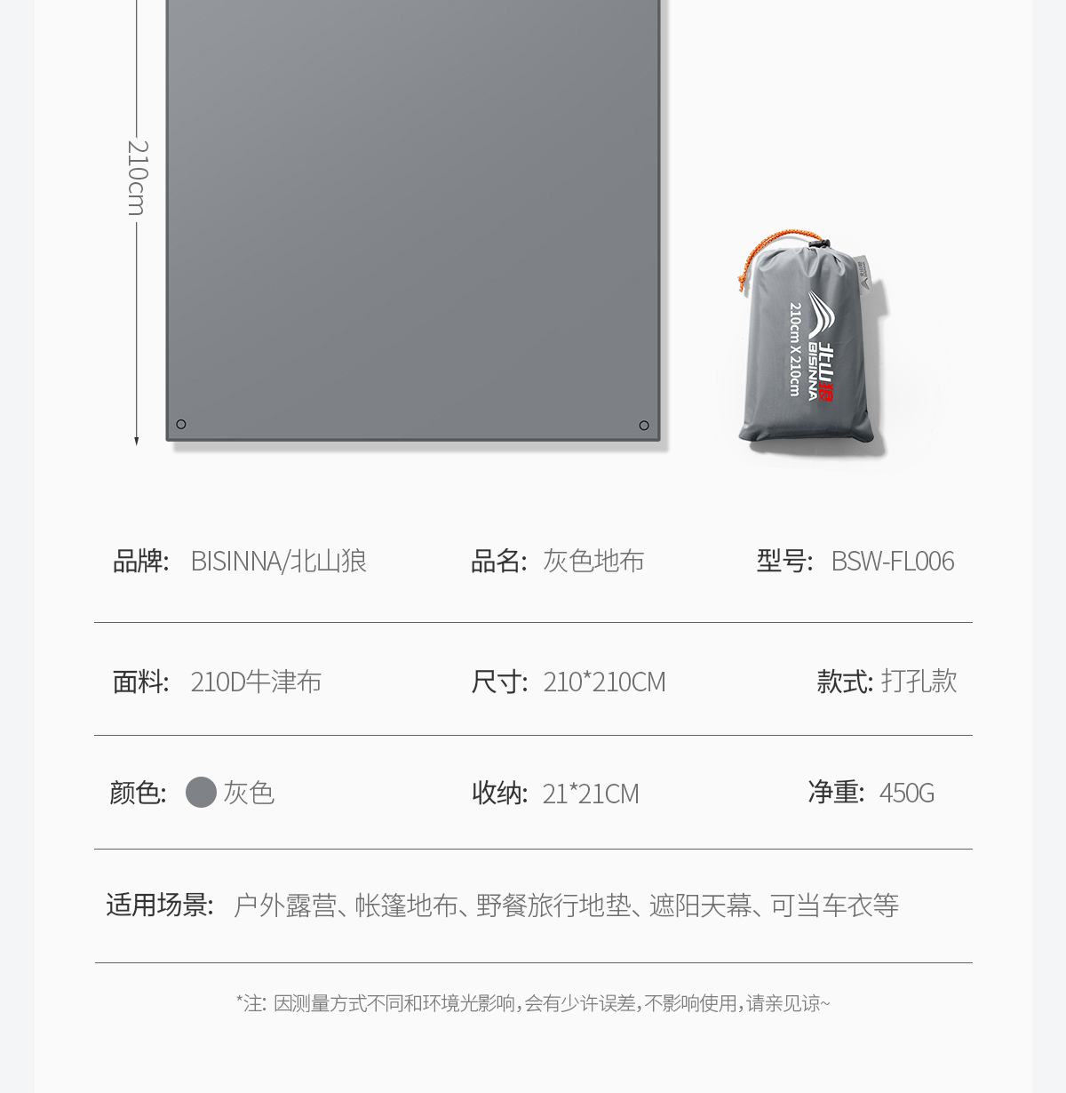| 面料 | 210D牛津布 |
