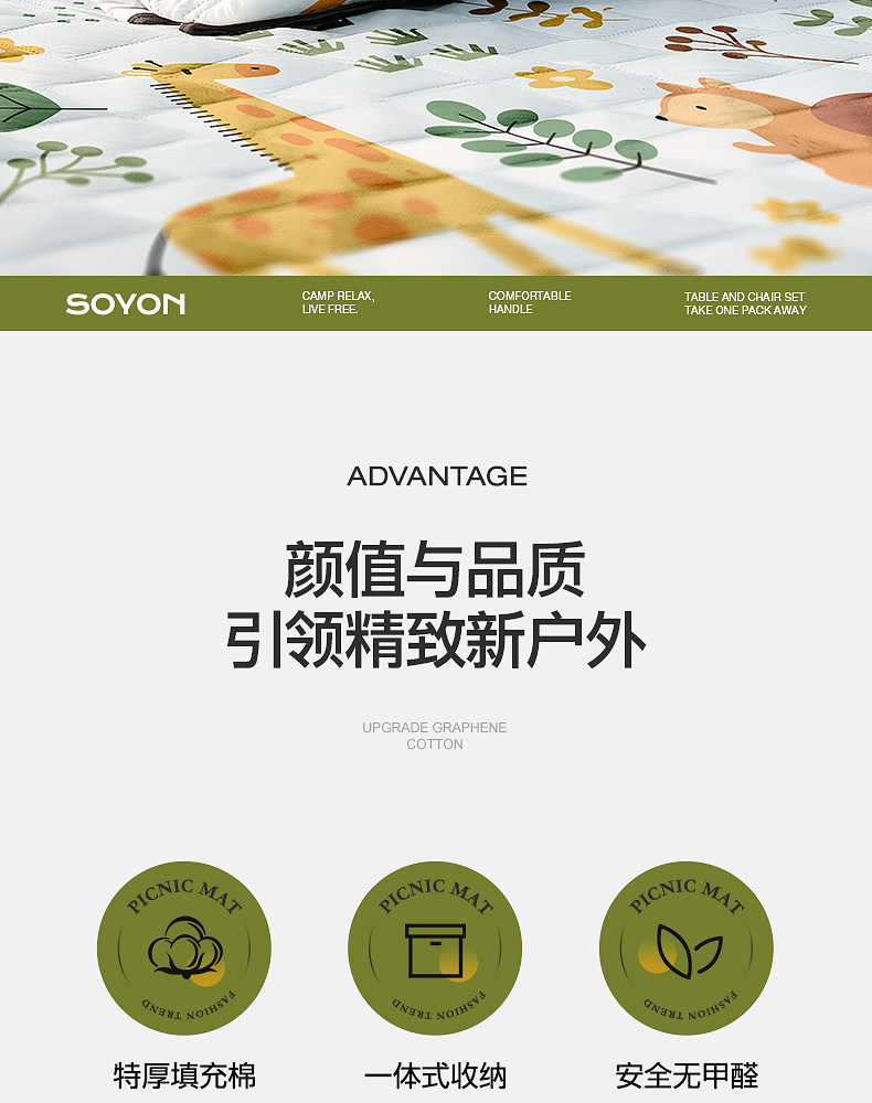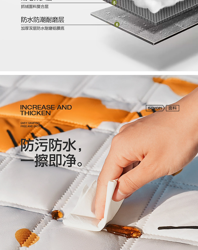 SOYON可攜式防水野餐墊防潮墊帳篷墊子露營戶外地墊內墊加厚墊