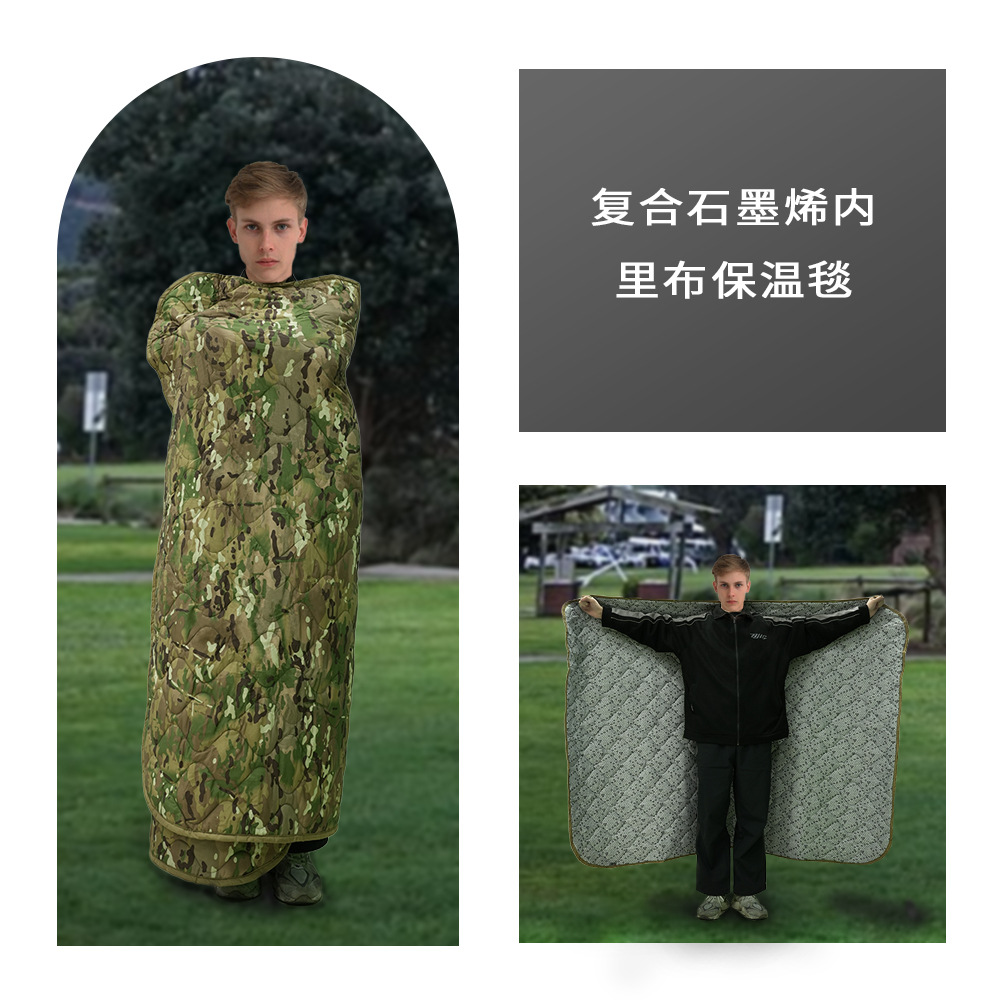 3M石墨烯戶外野營露營用品多功能迷彩 午睡毯紐釦野炊絎縫露營被