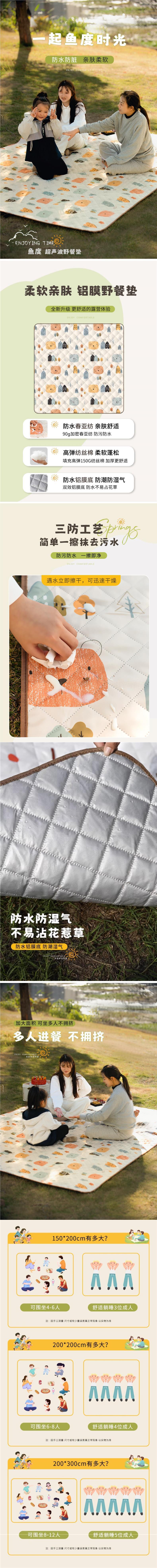 野餐墊防潮墊加厚可攜式戶外露營野營沙灘草地野炊防水墊子帳篷地墊