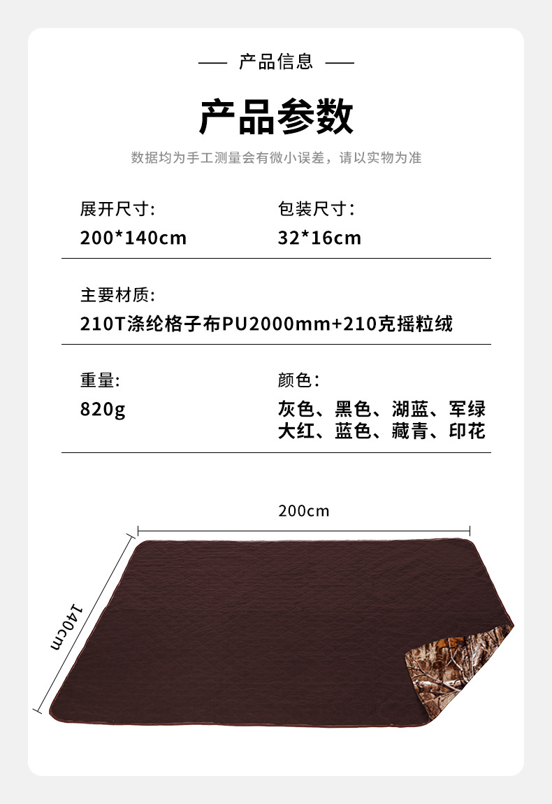 戶外野餐墊可攜式可折疊露營毯子防水防潮加厚搖粒絨超音波野餐墊子