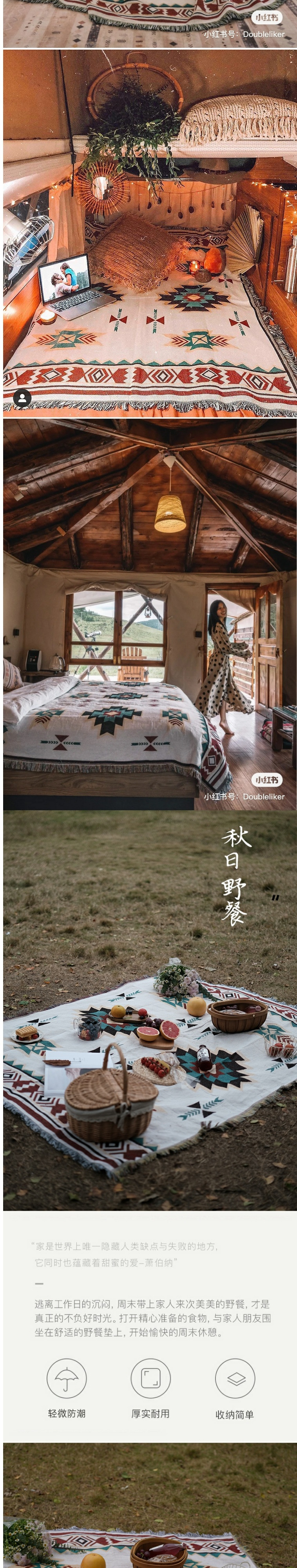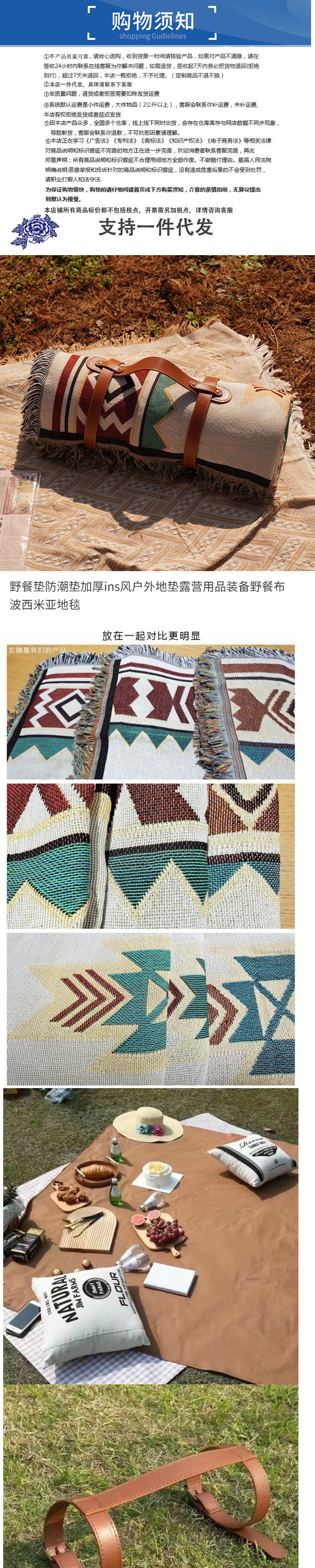 野餐墊防潮墊加厚ins風戶外地墊露營用品裝備野餐布波西米亞地毯