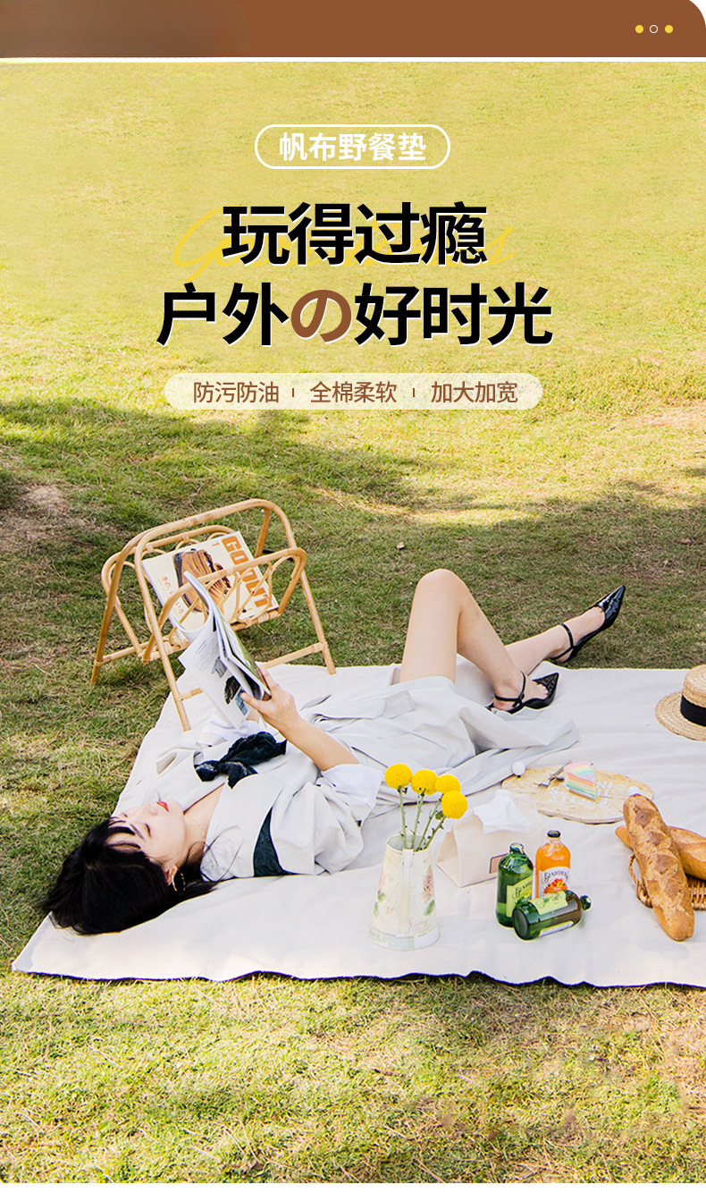 野餐墊戶外防潮墊子 法式復古純色露營沙灘墊 網紅可攜式防水野餐墊