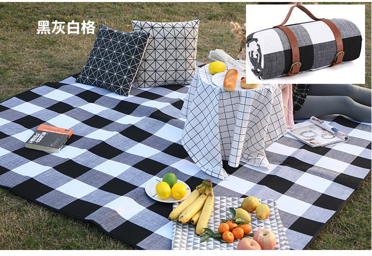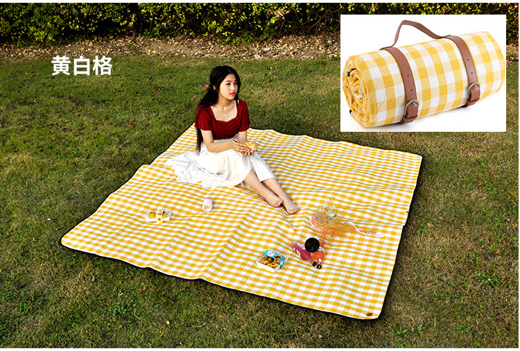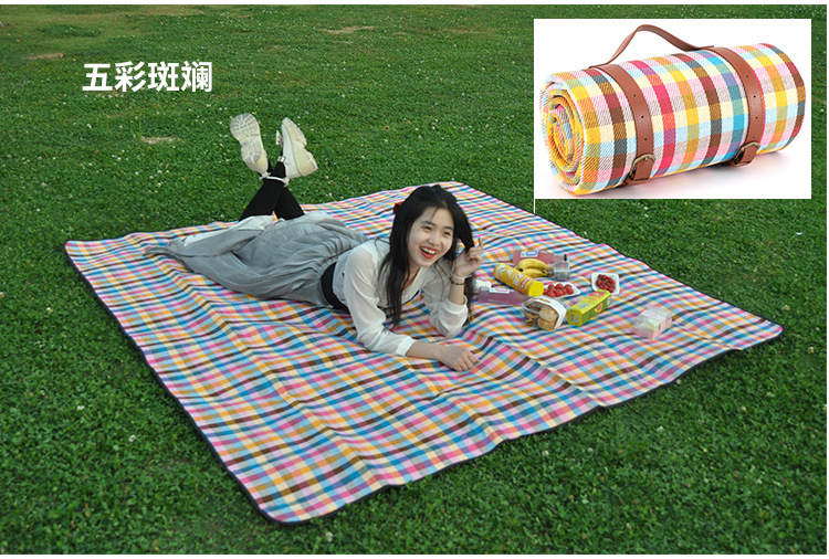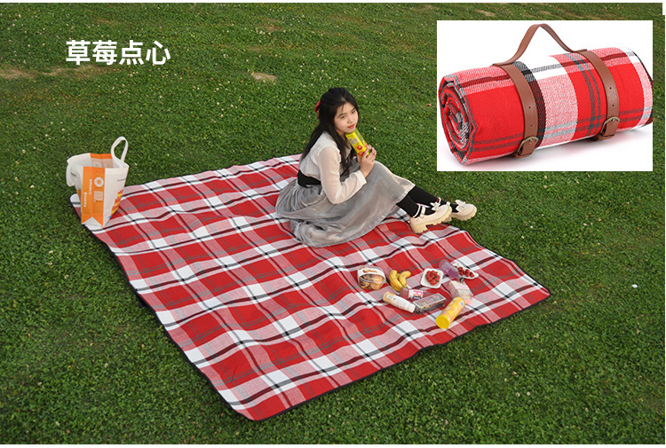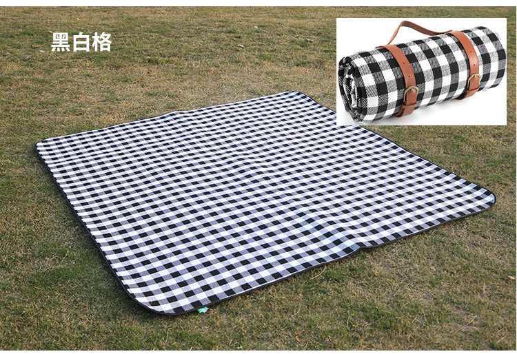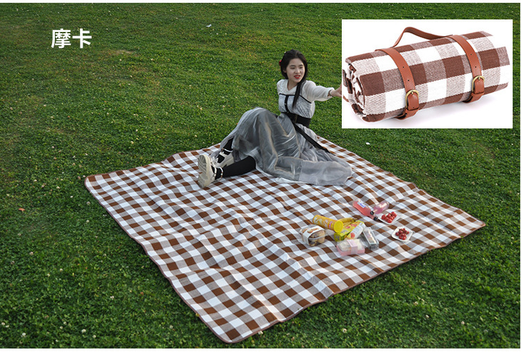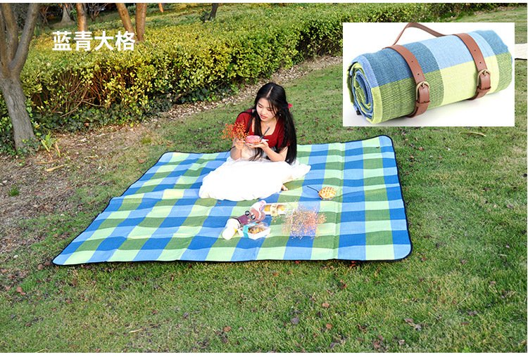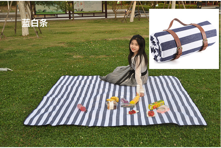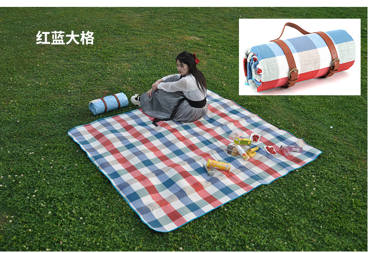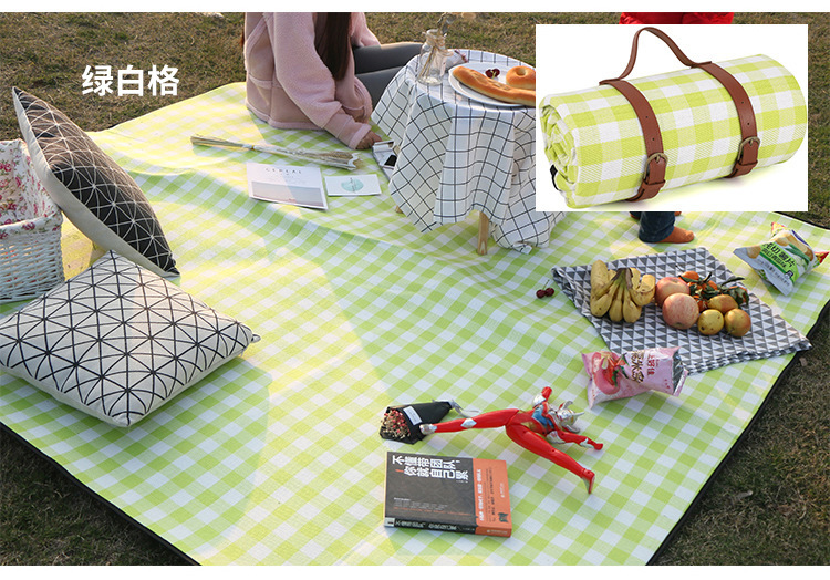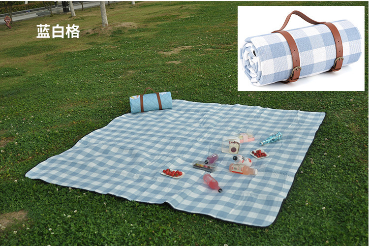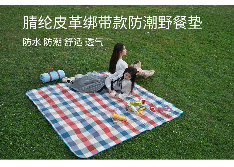 晴綸野餐墊防潮墊戶外防水草地墊野餐布皮革綁帶可攜式