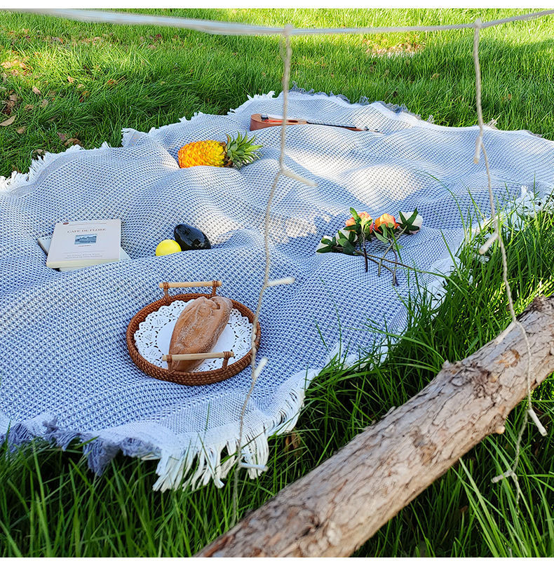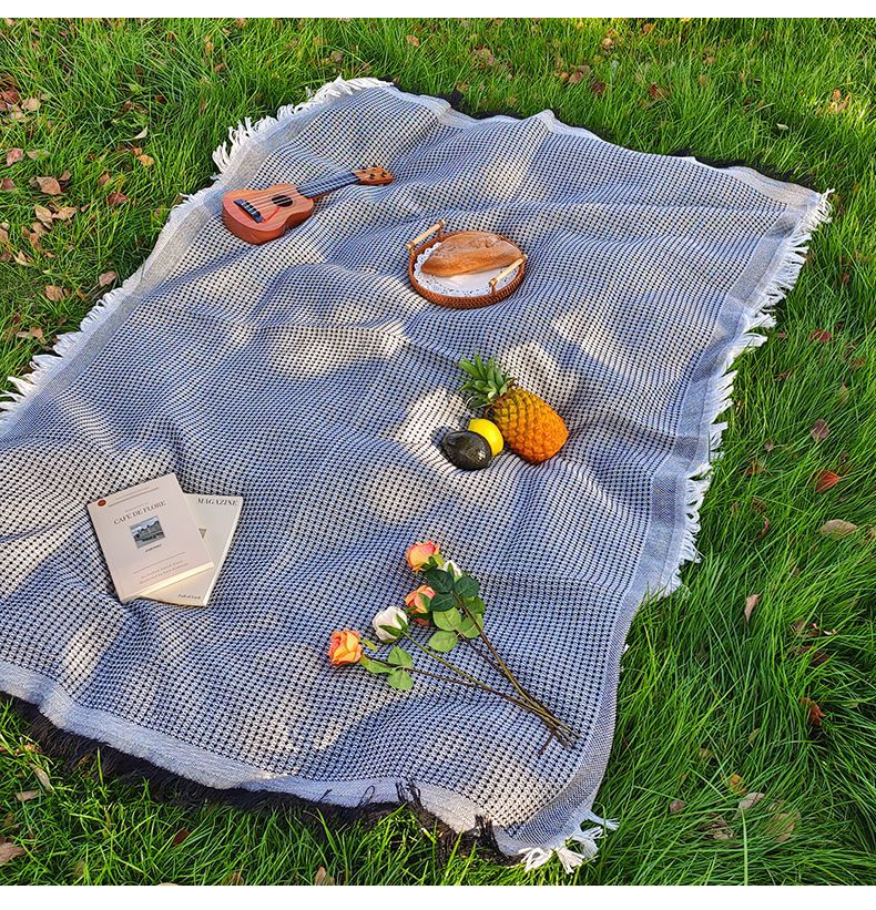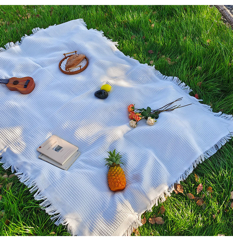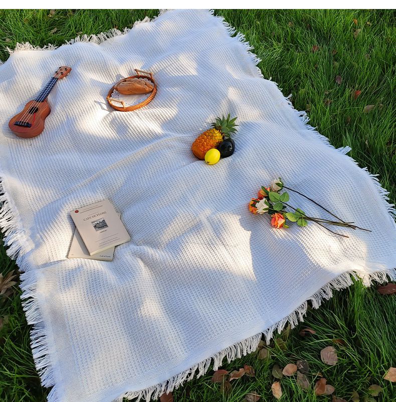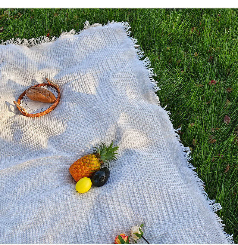ins風戶外春遊墊野餐墊加厚可攜式白色毯子海邊沙灘墊公園草地鋪墊