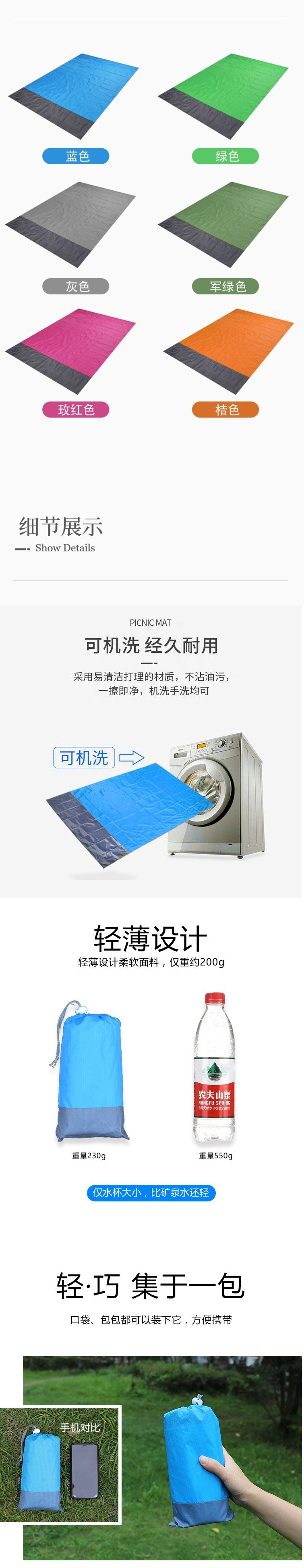 野餐墊超薄口袋防潮墊沙灘墊防水防沙超輕折疊可攜式地墊毯蓆子海邊