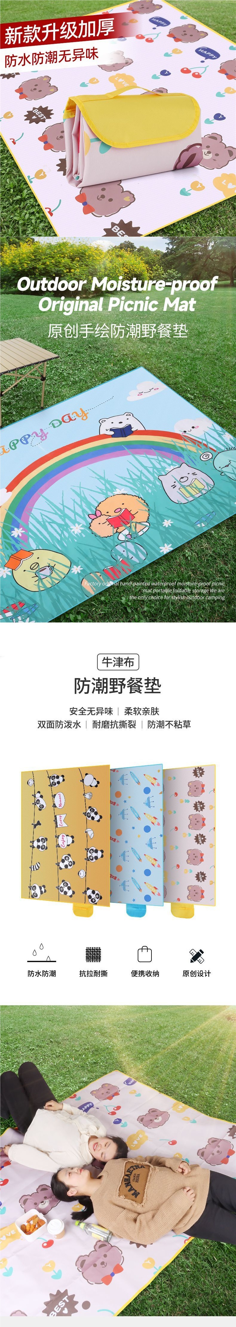 牛津布野餐墊防潮加厚地墊戶外露營墊子防水野炊可攜式春遊可折疊