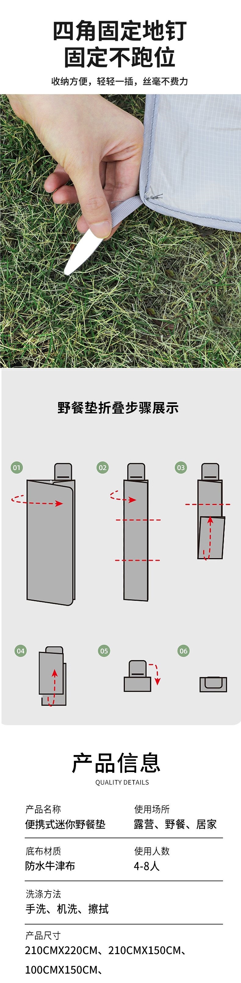 迷你野餐墊可攜式沙灘墊防水防沙戶外超輕可折疊海邊草坪露營地墊