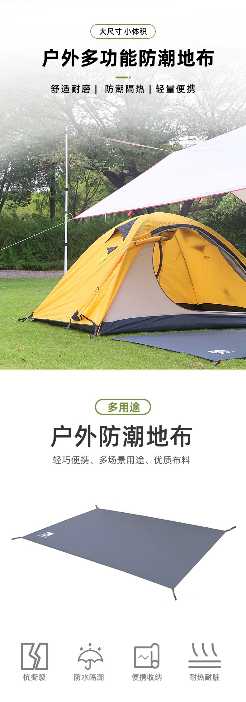 帳篷地蓆戶外天幕地布防水防潮野餐墊單3/4人牛津布耐磨防紥地墊