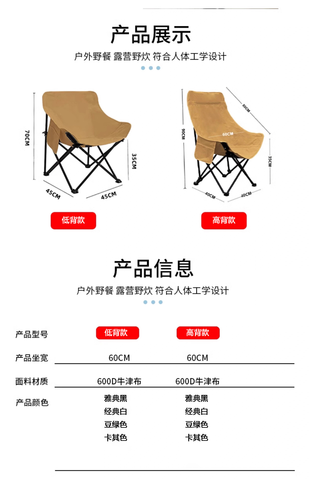 戶外折疊低背月亮椅子替換布面高背月亮椅牛津布椅子面