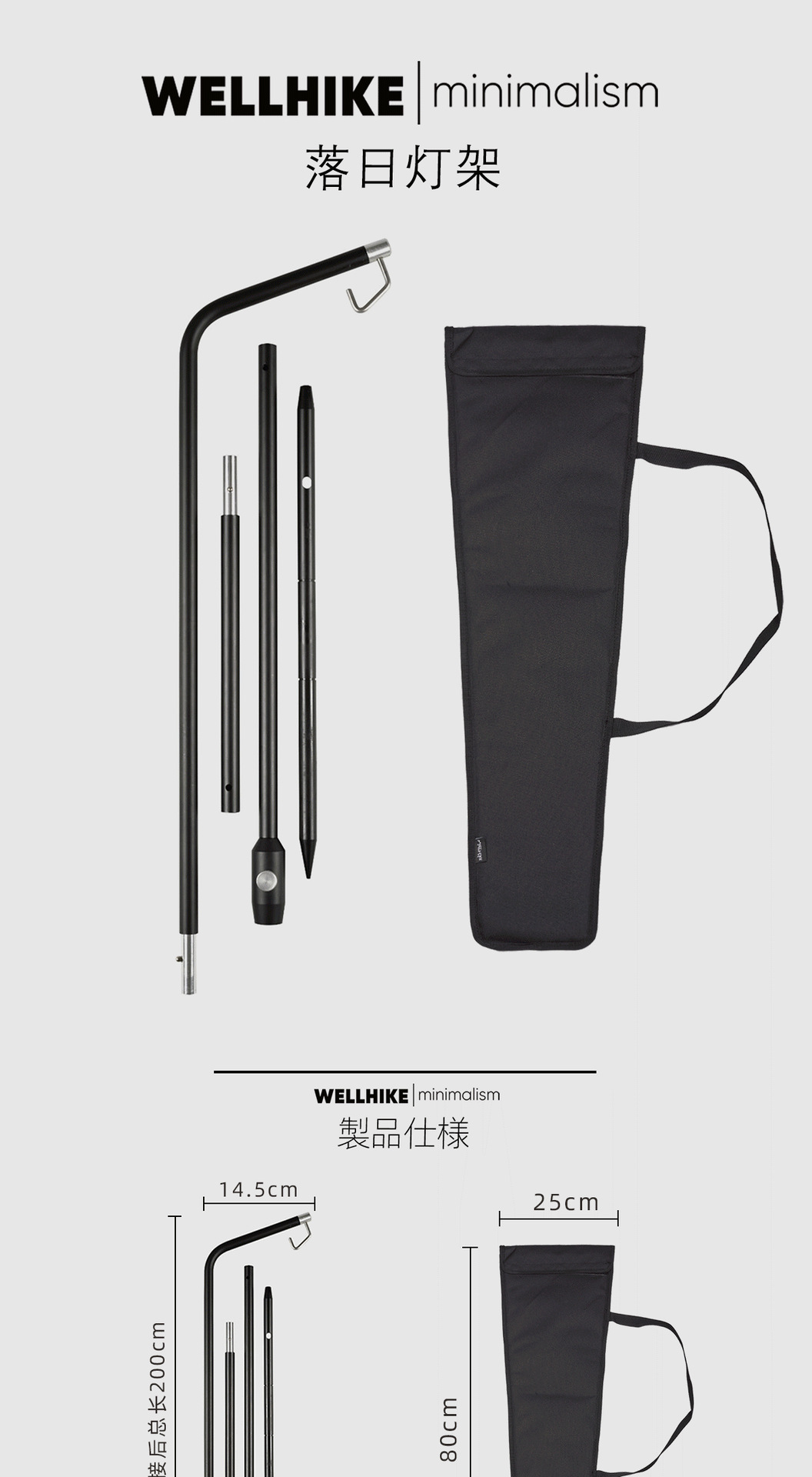 戶外露營帳篷輕量燈架zanearts款鋁合金折疊照明燈桿支架