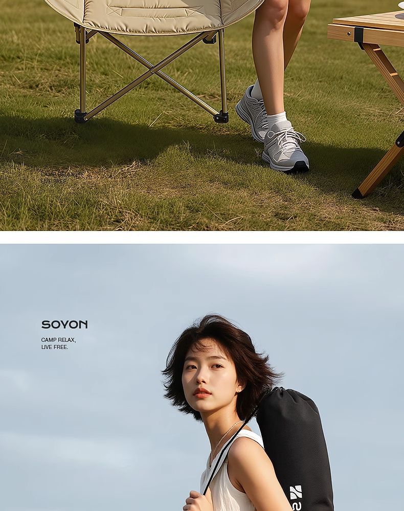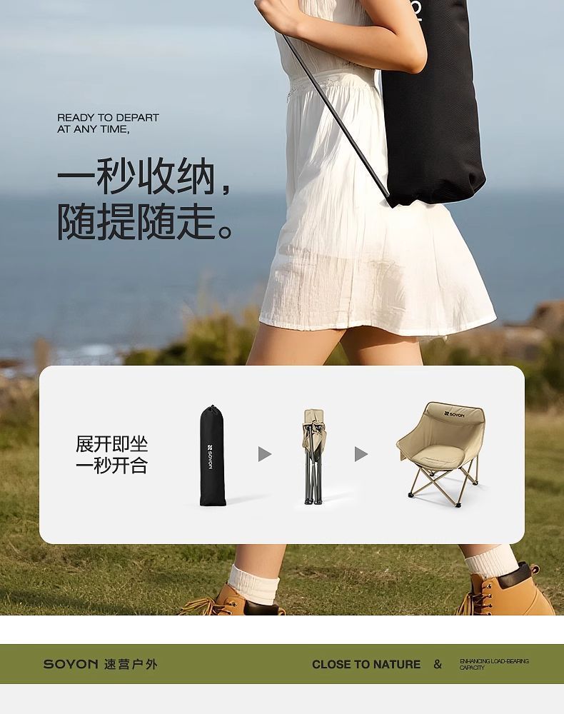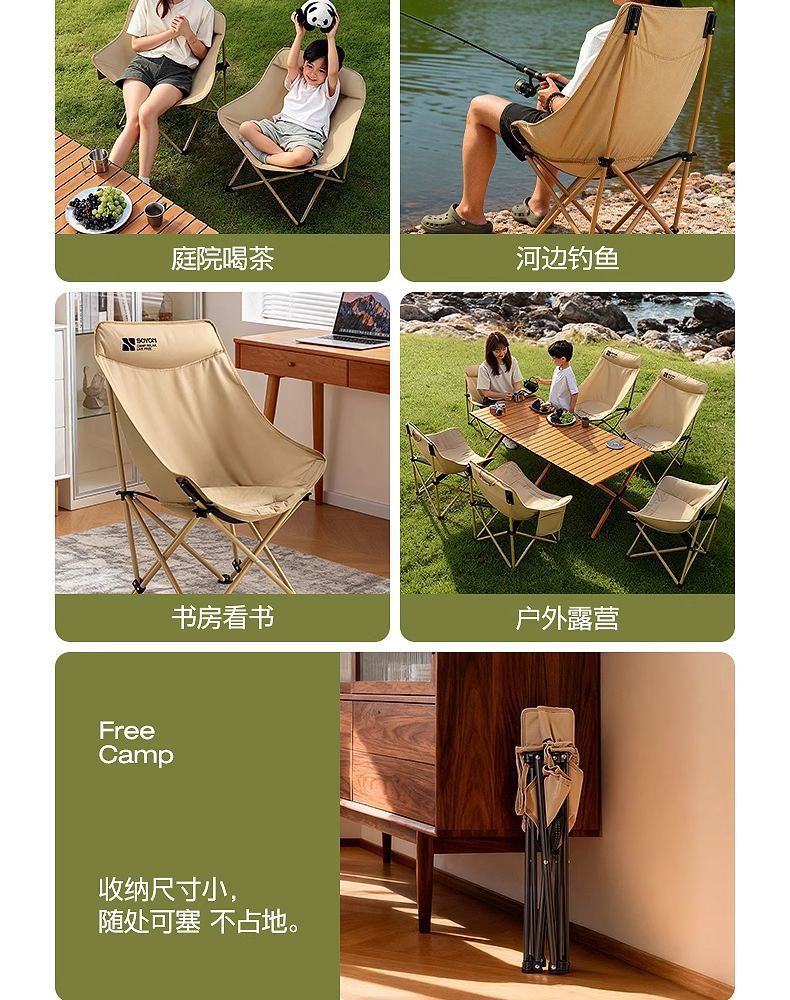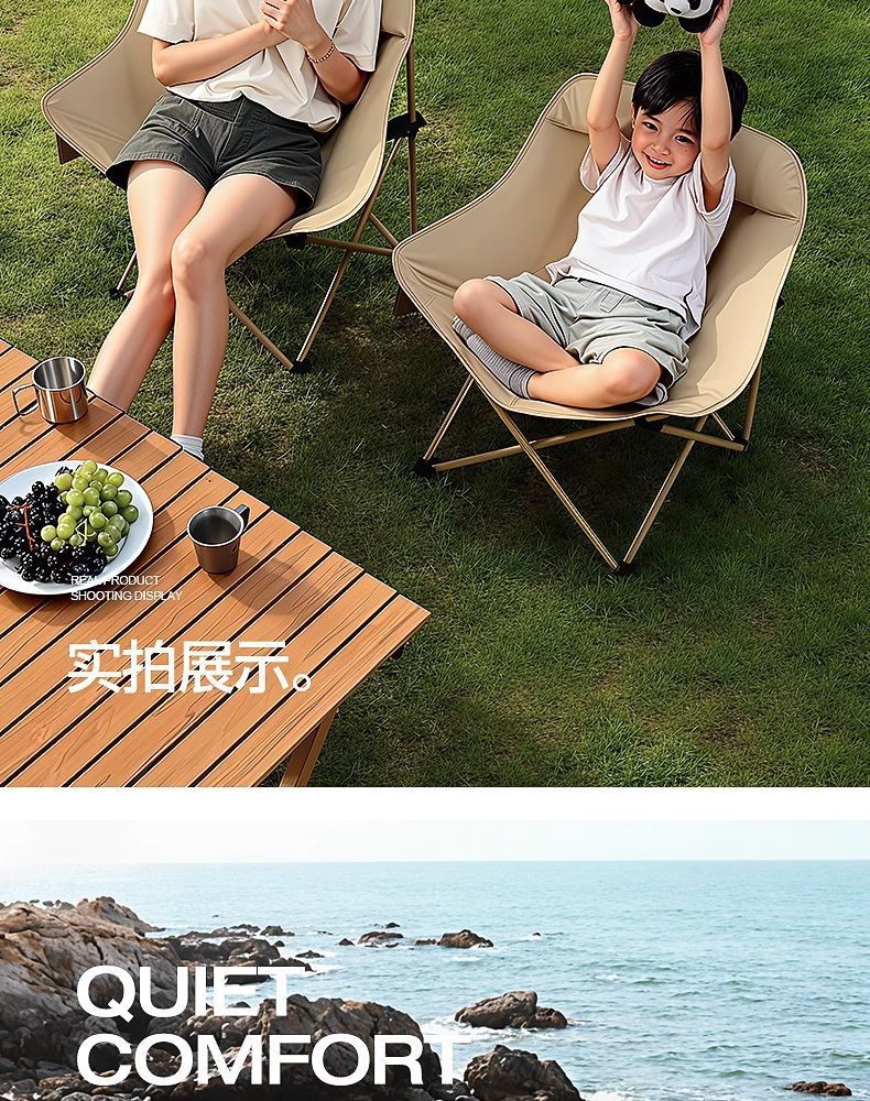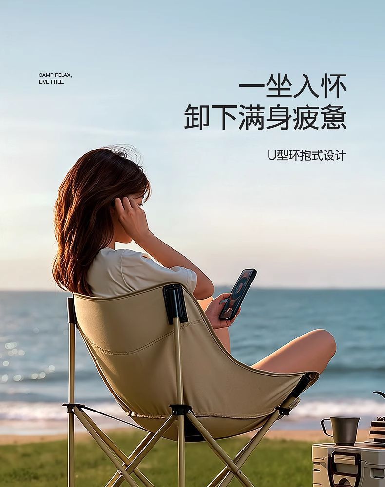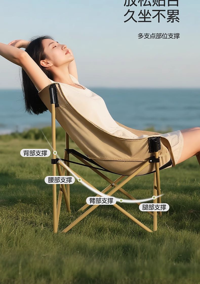 戶外折疊椅可攜式月亮椅沙灘釣魚椅凳2025新款露營椅子