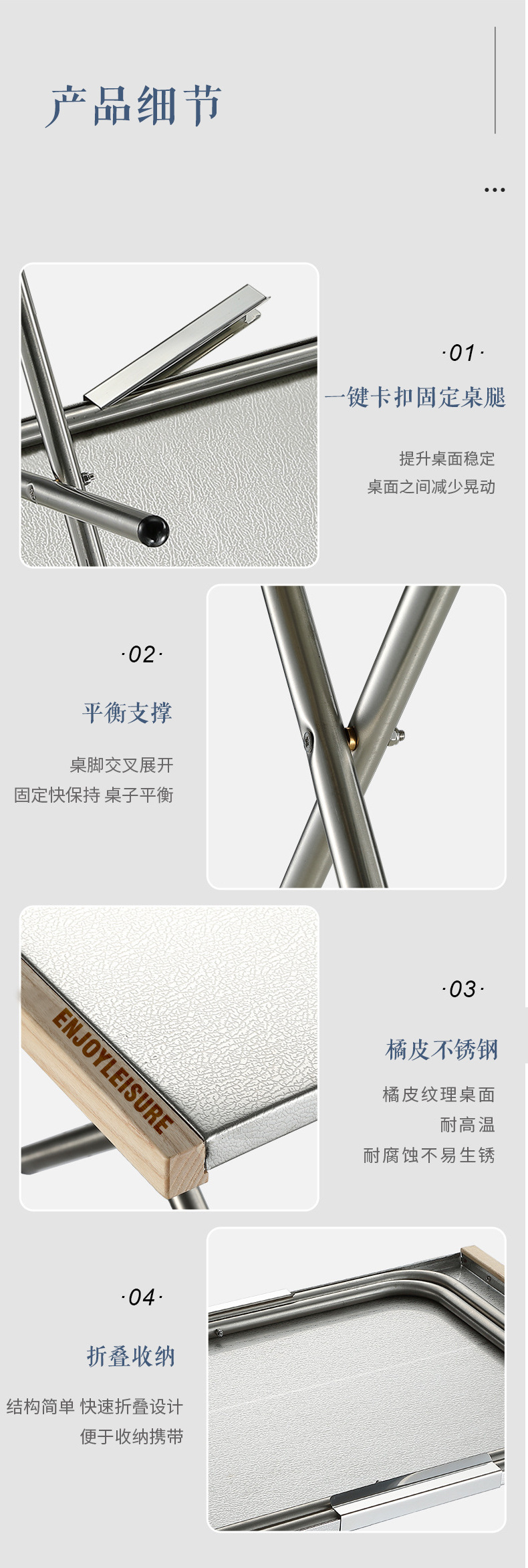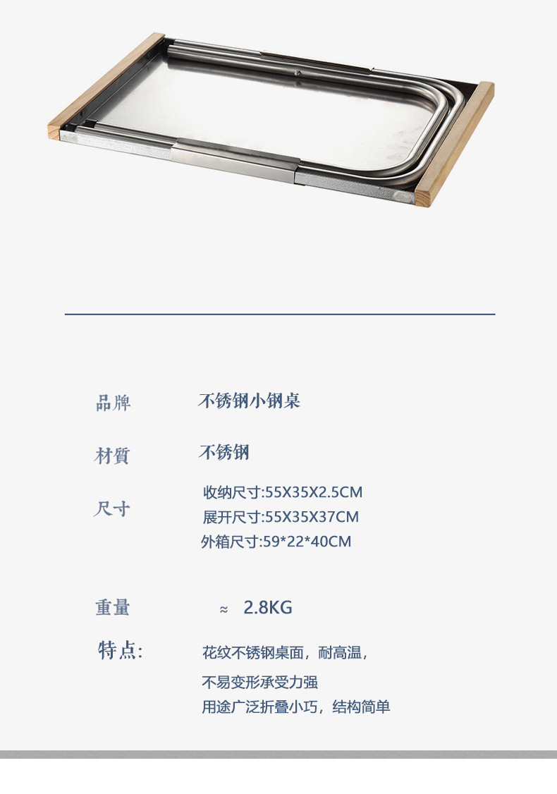 樂享戶外可攜式不鏽鋼戶外野餐燒烤桌子露營桌折疊桌休閒小鋼桌