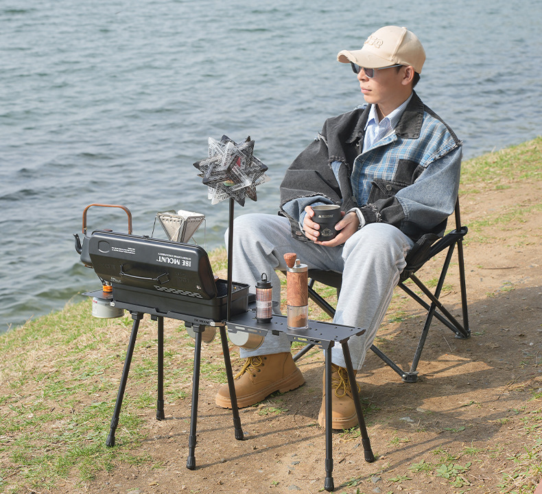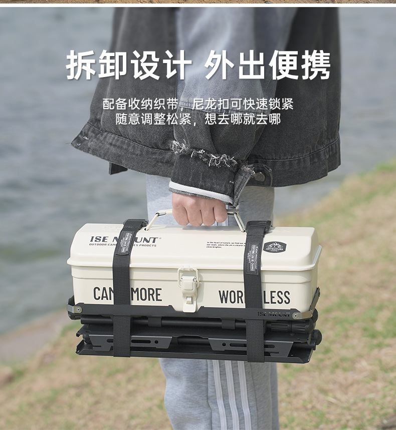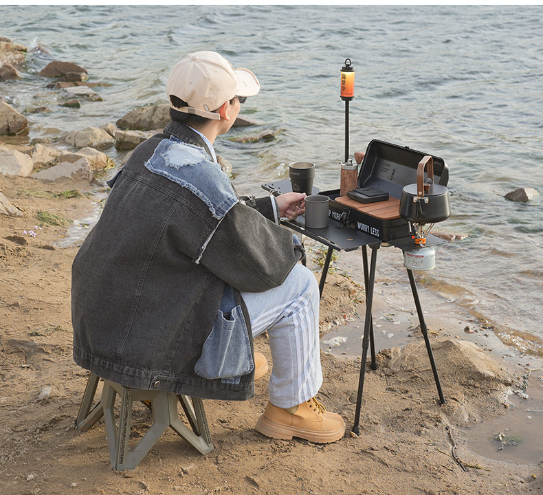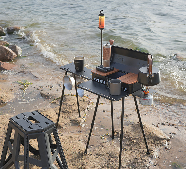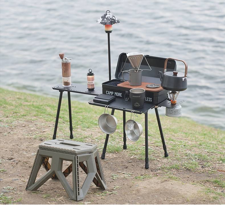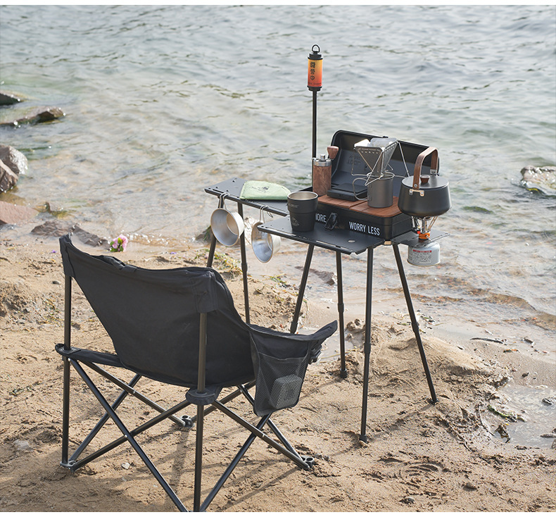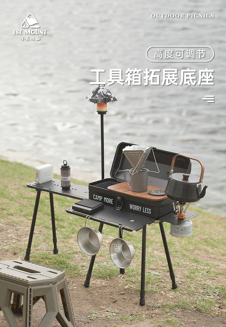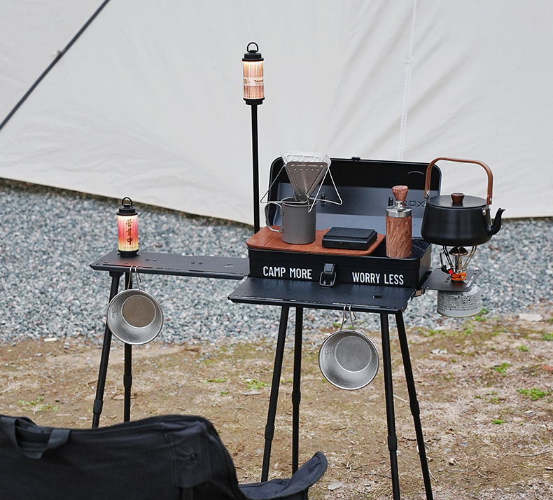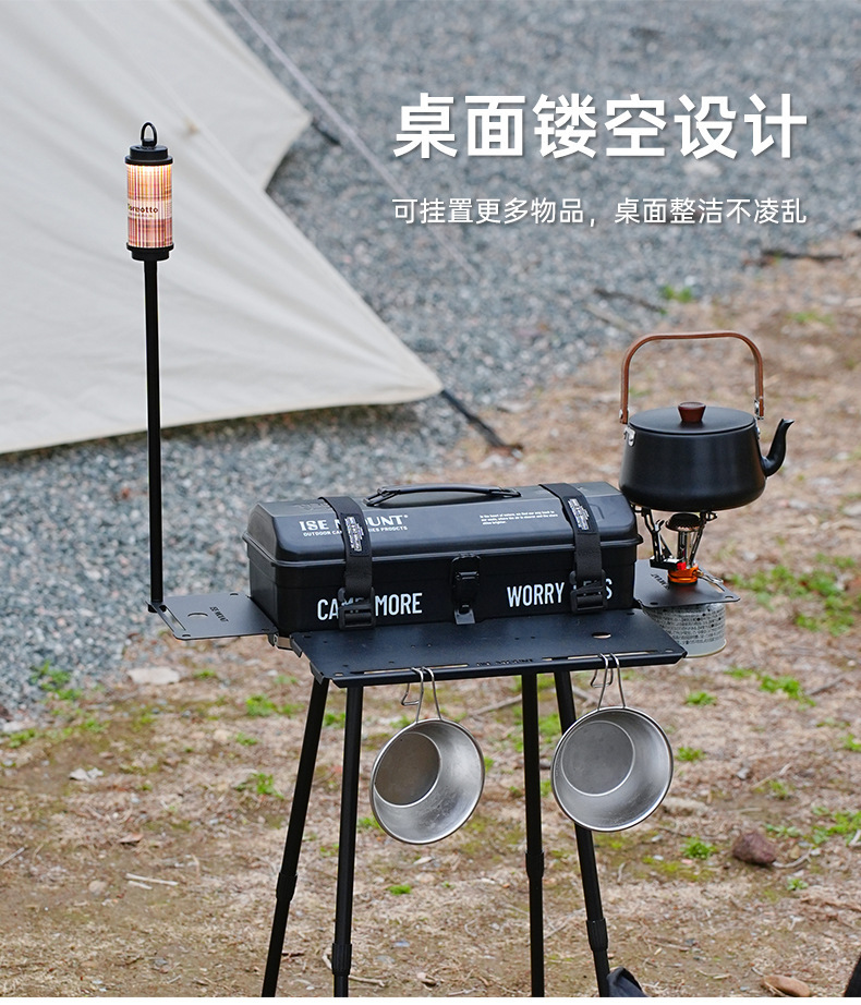 戶外野餐折疊桌可攜式工具箱拓展底座升降款野炊露營小桌帶燈架