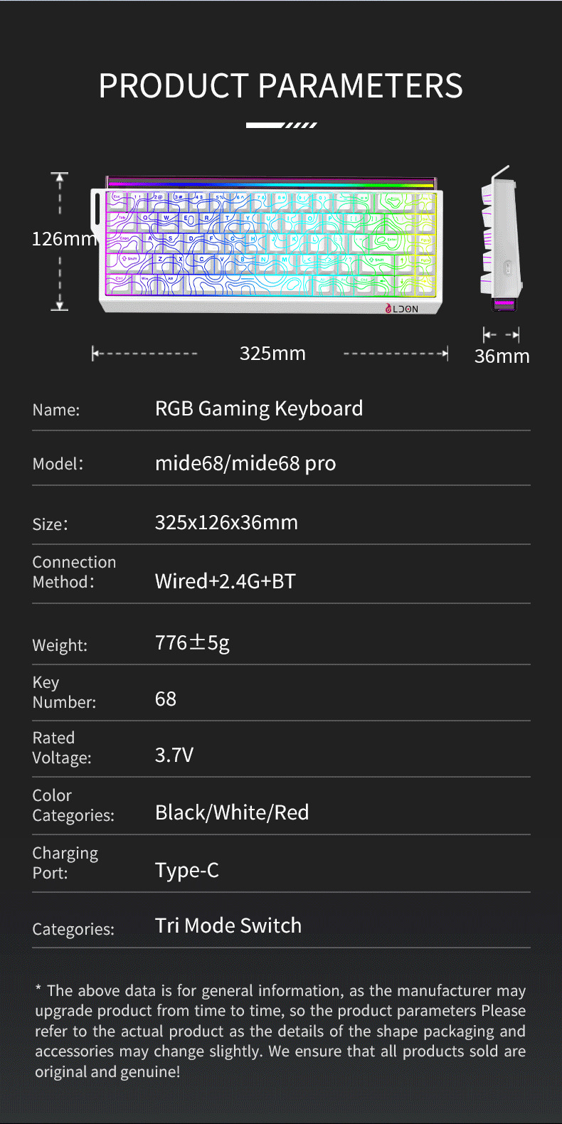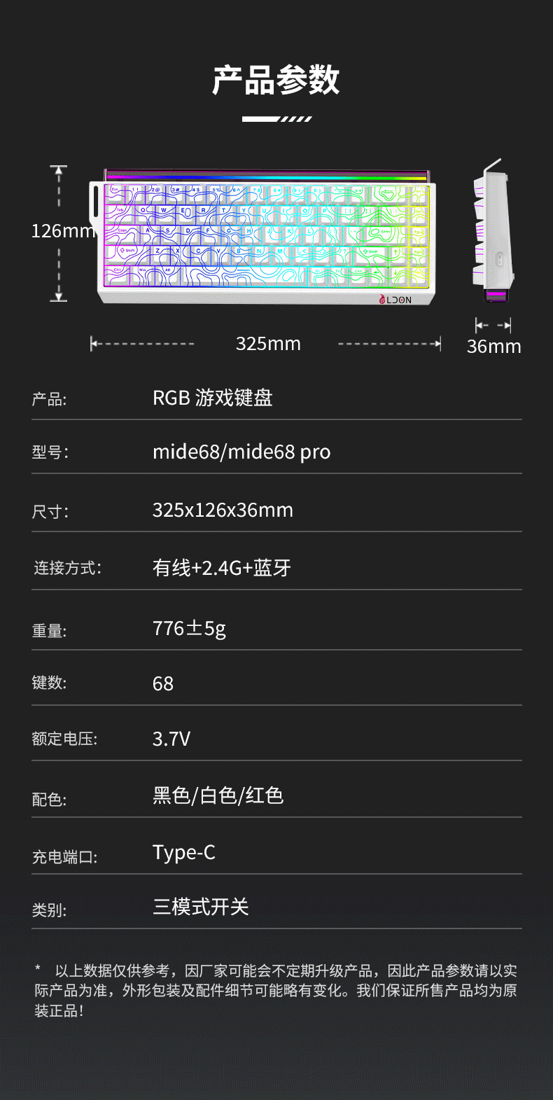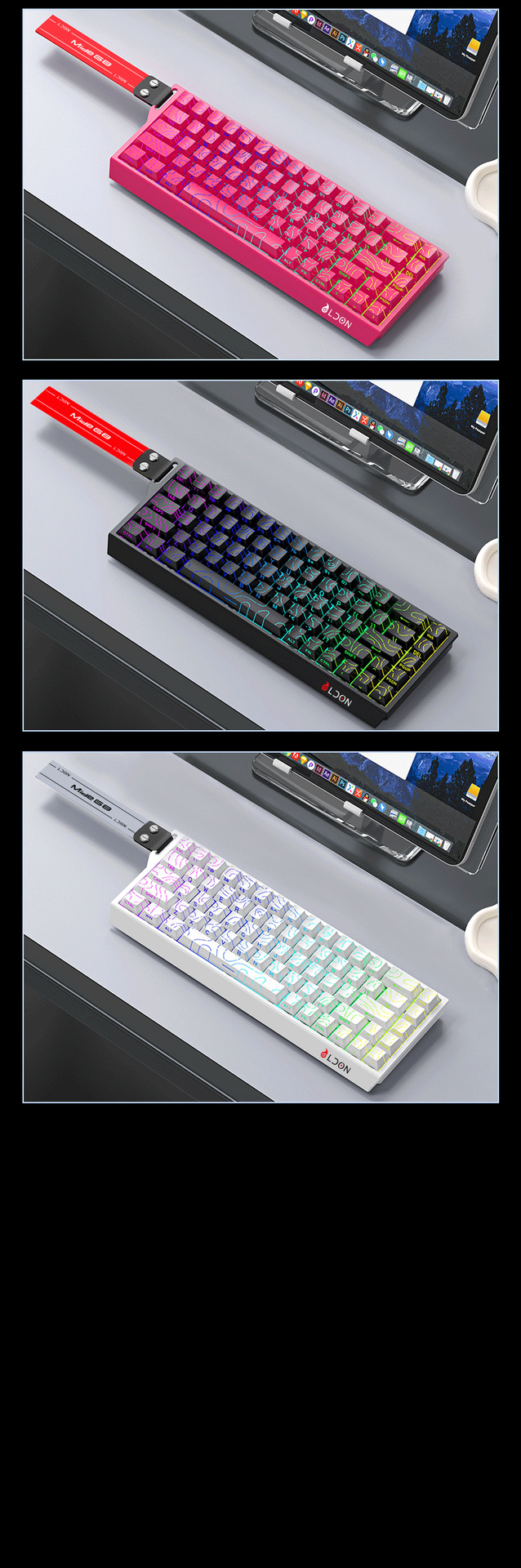 | 顔色 | Made68RX無線三模玫紅色等高線正刻【帶燈箱】 |