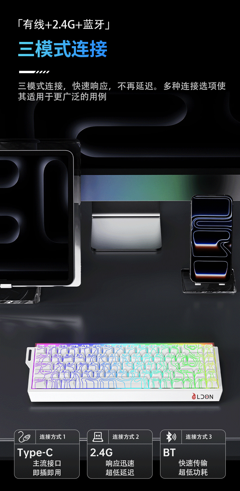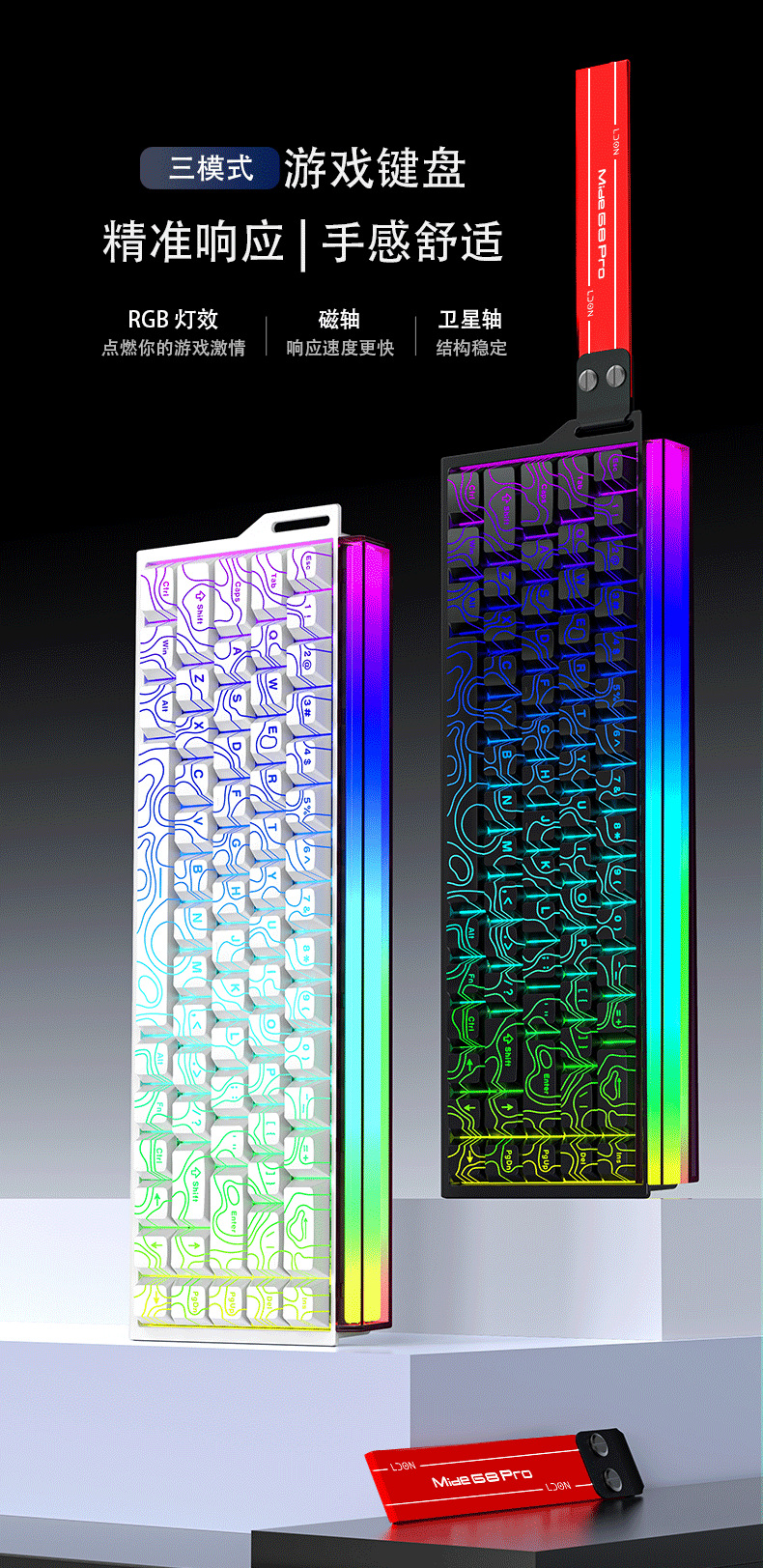龍衛士68RX無線三模8K磁軸機械鍵盤電競遊戯FPS通用RT0.01帶燈箱
