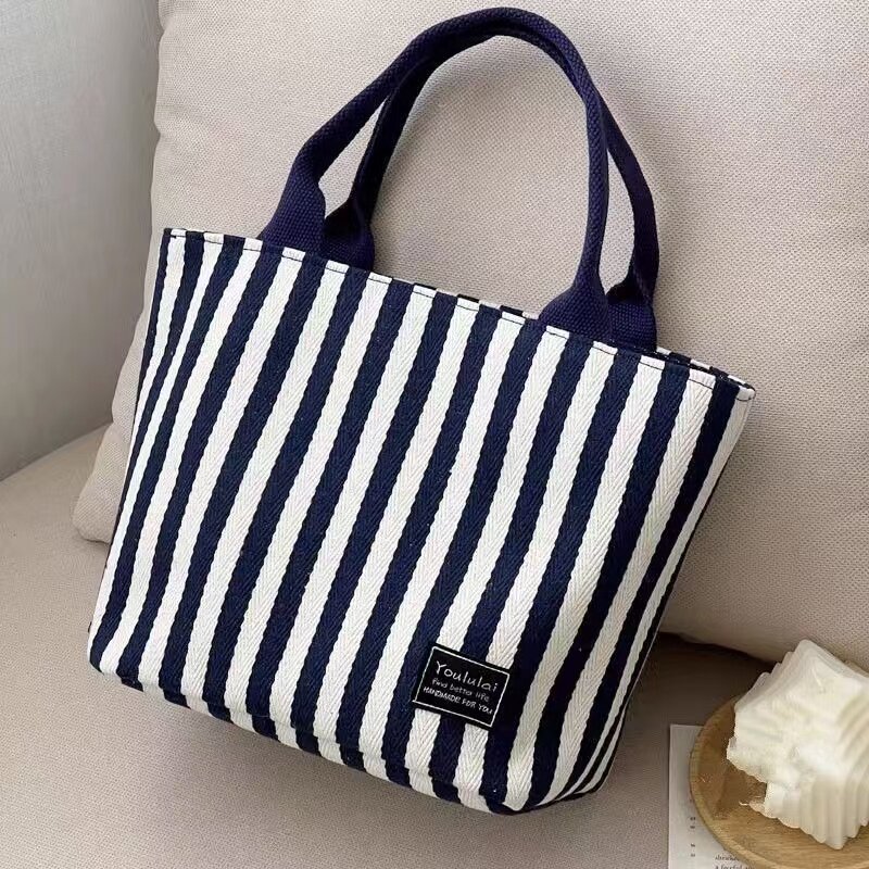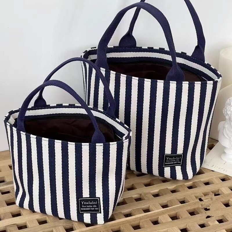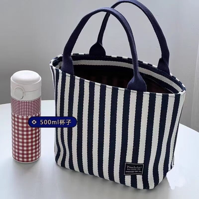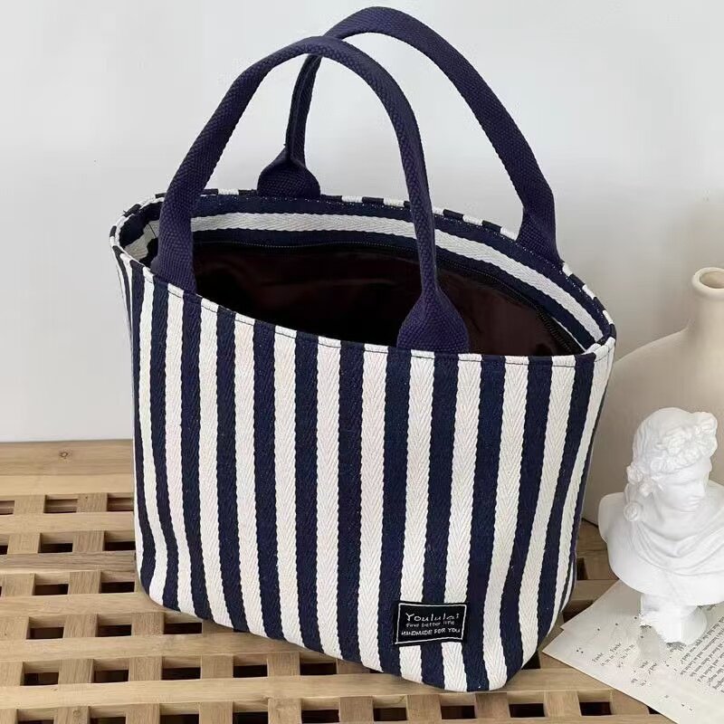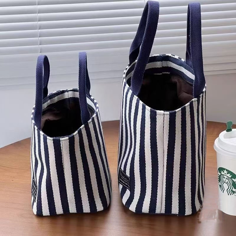 日系時尚條紋手提包大容量時尚休閒外出收納袋可裝雨傘水杯便當包