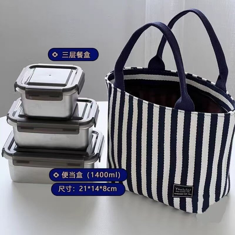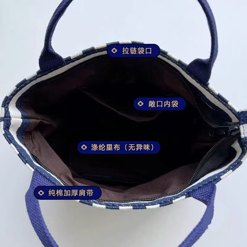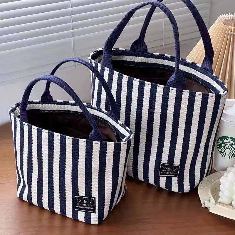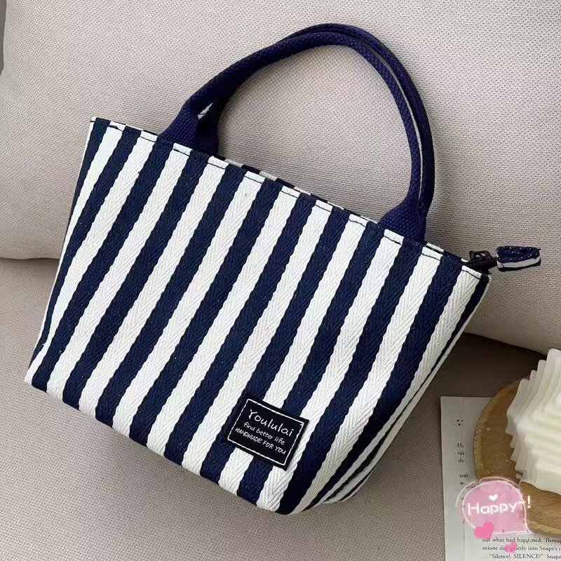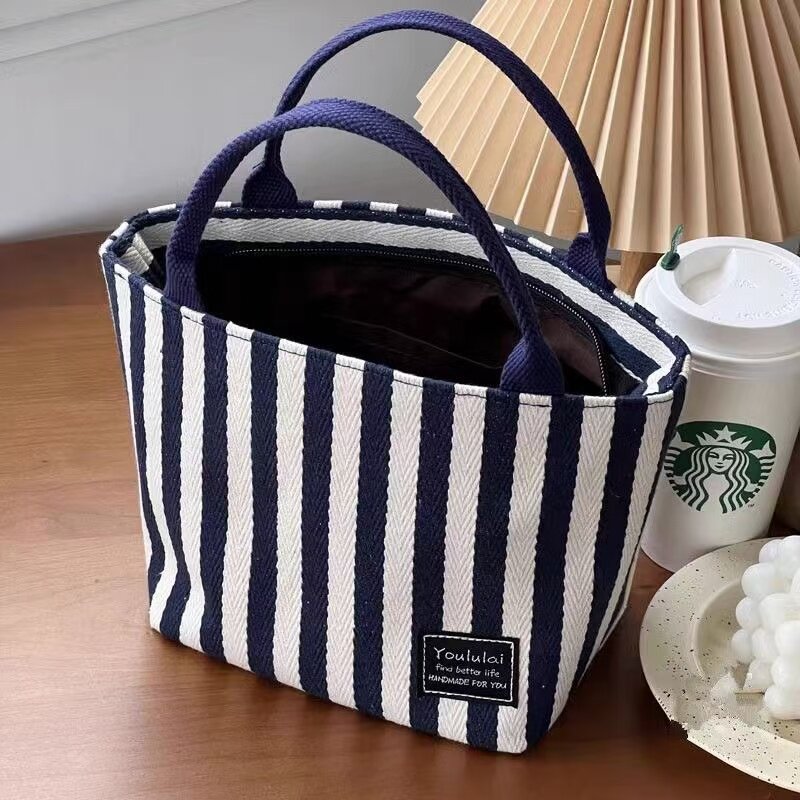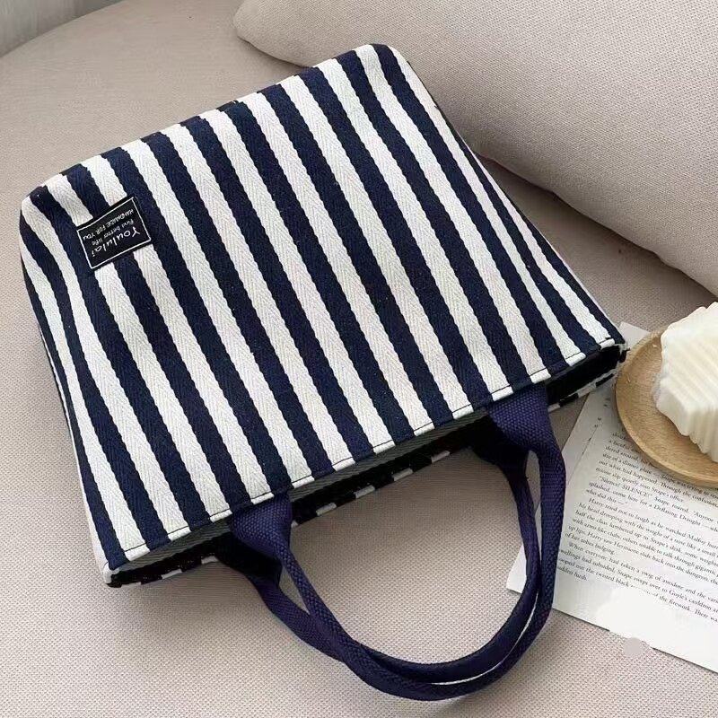 日系時尚條紋手提包大容量時尚休閒外出收納袋可裝雨傘水杯便當包