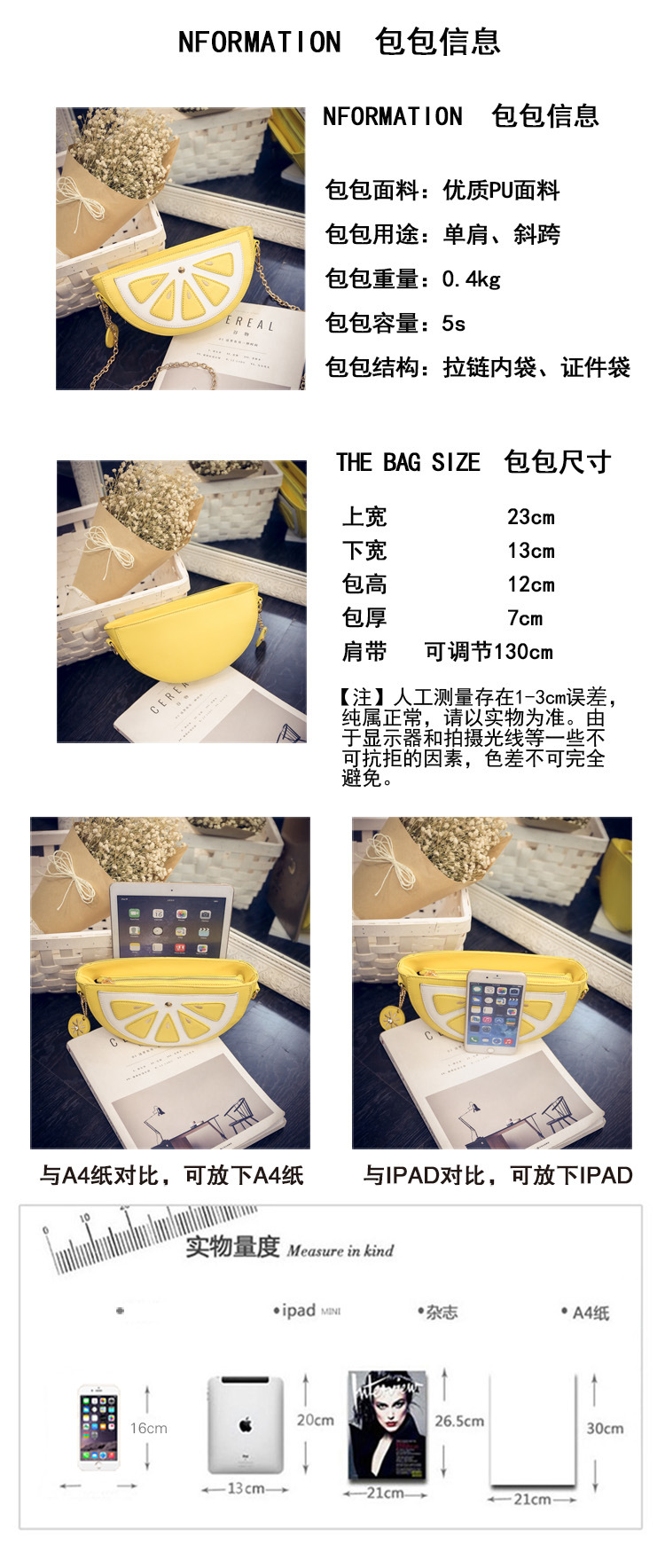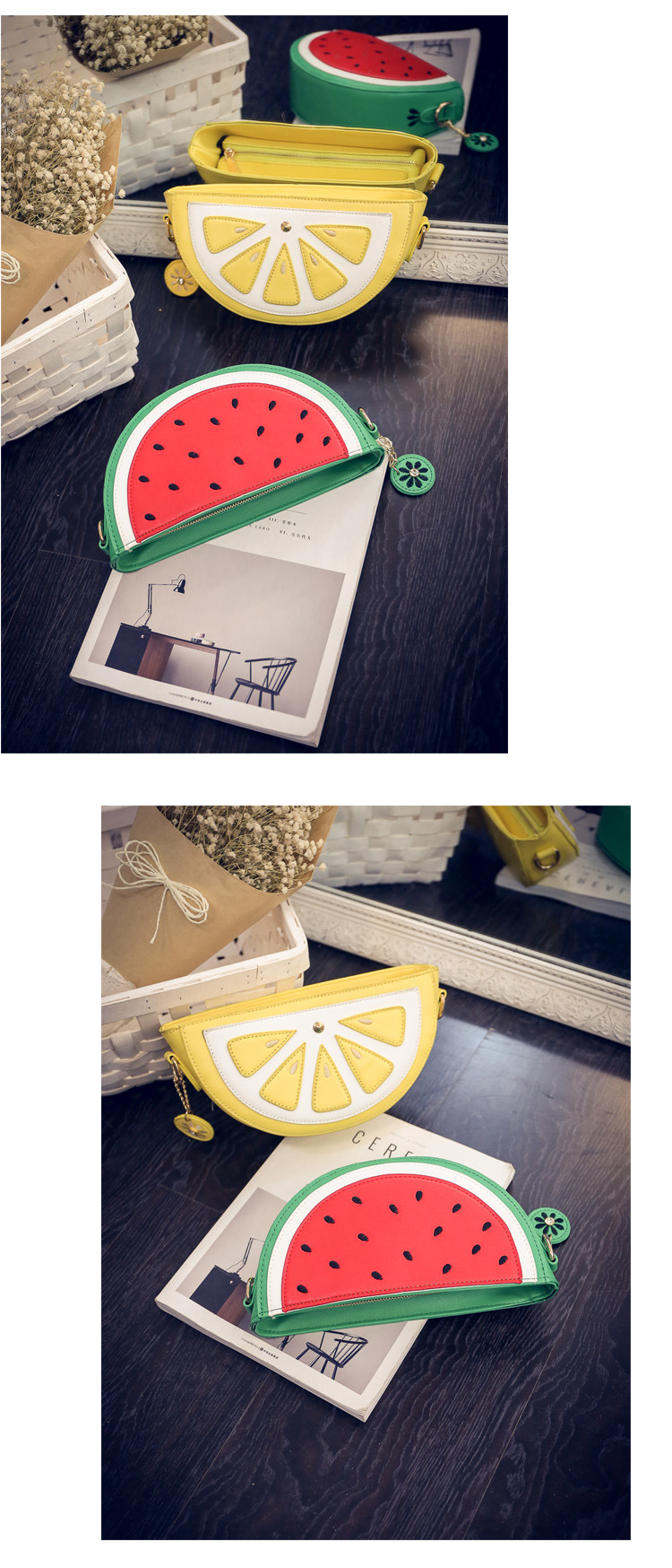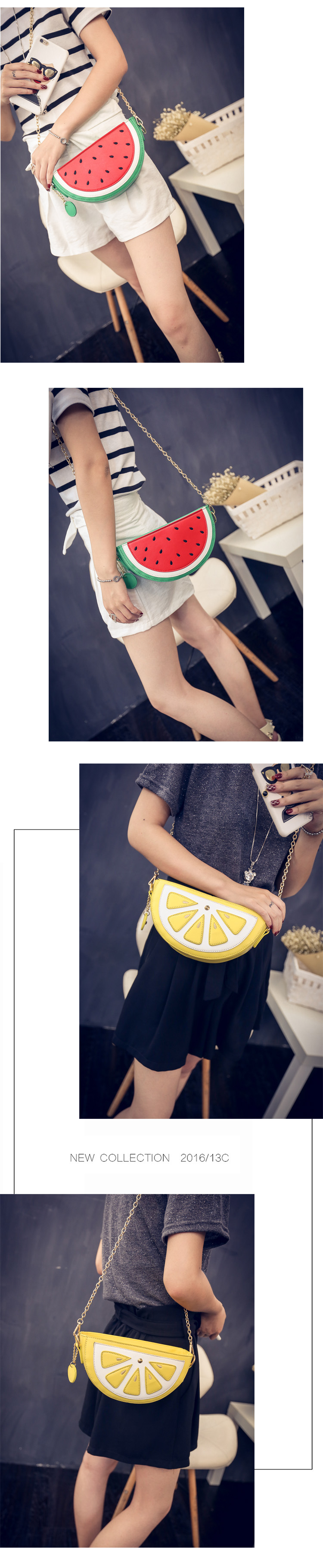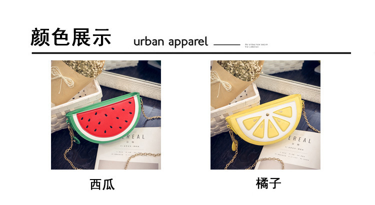 韓版新款橘子西瓜水果女包手機包鏈條單肩斜後後背包個性搞怪創意