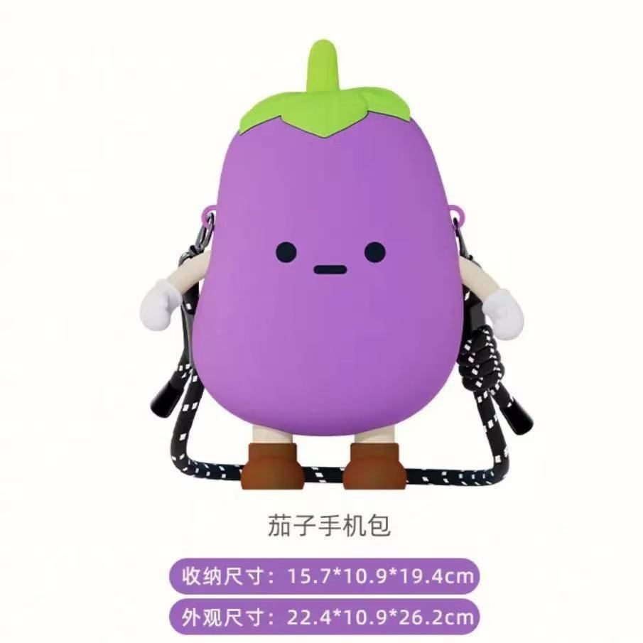 蔬菜茄子手機馬鈴薯休閒單肩斜後後背包蘑菇大容量矽膠包茄子手機包純色