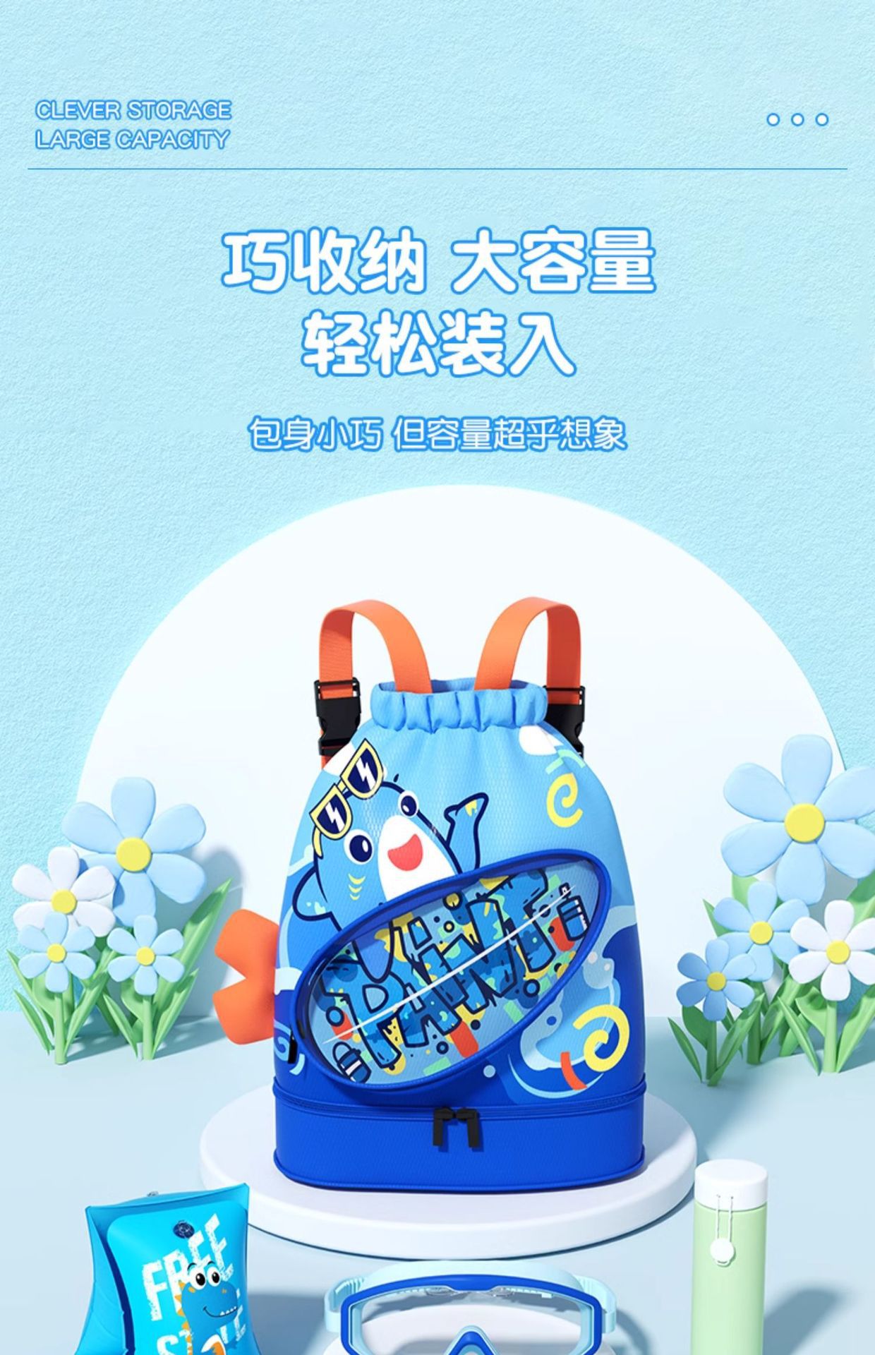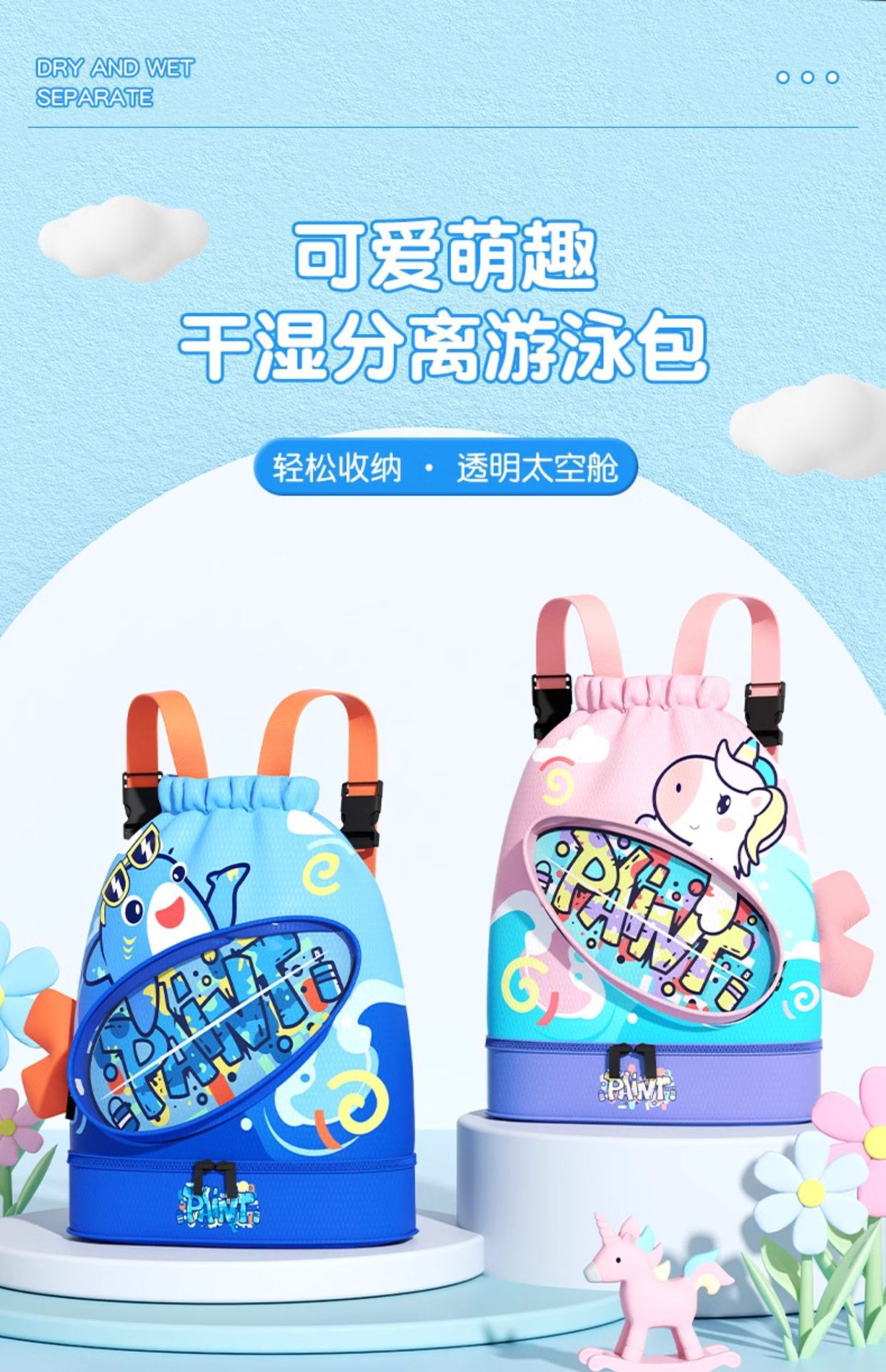 兒童遊泳收納包乾濕分離防水袋男女童卡通可攜式雙肩後後背包沙灘包