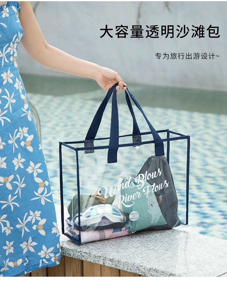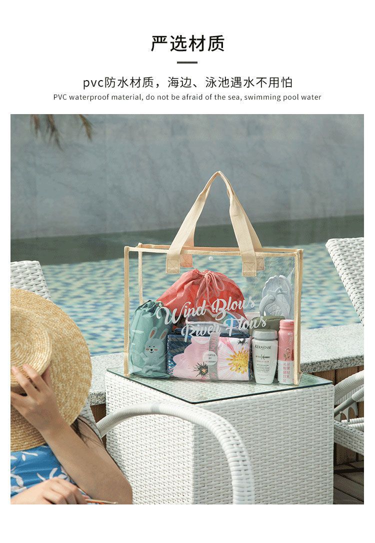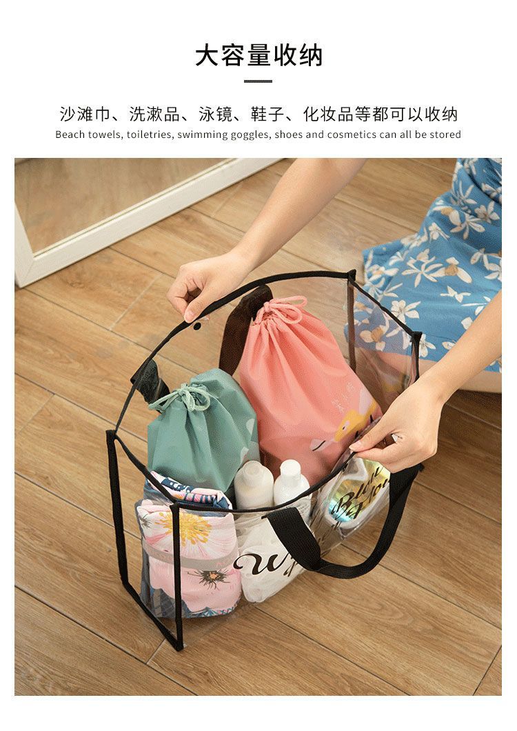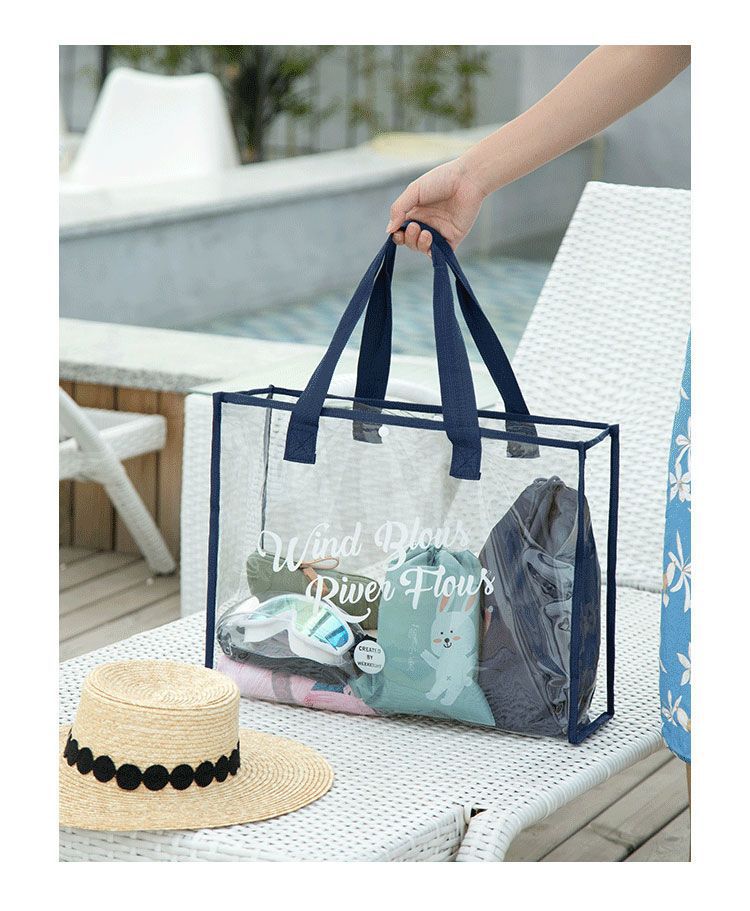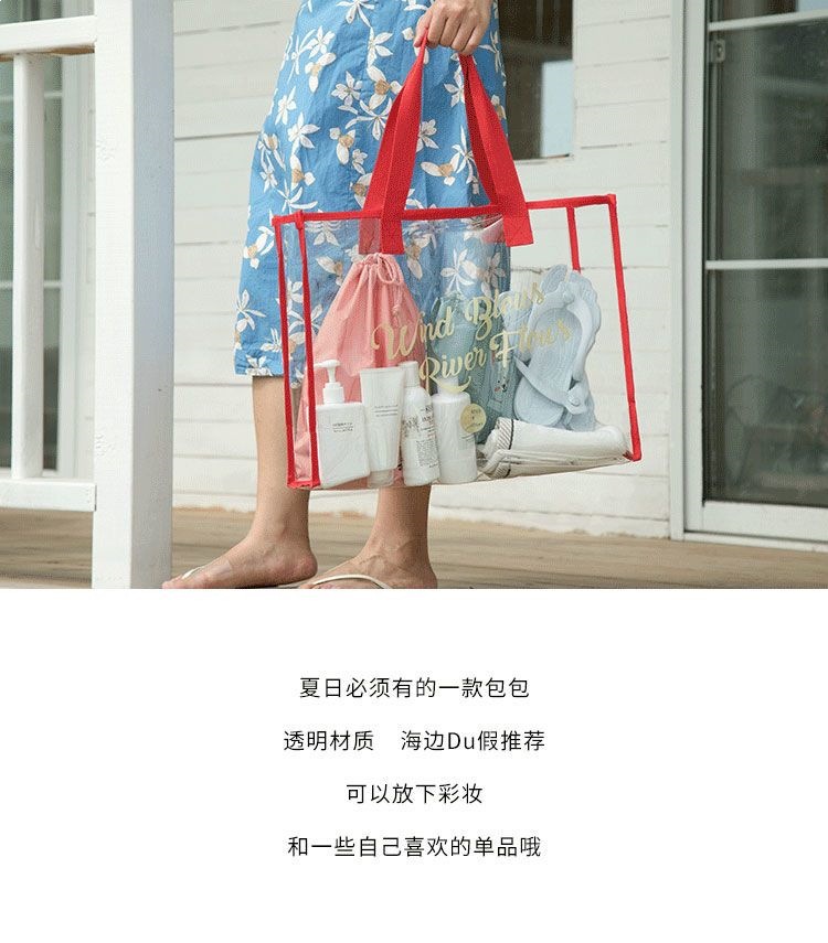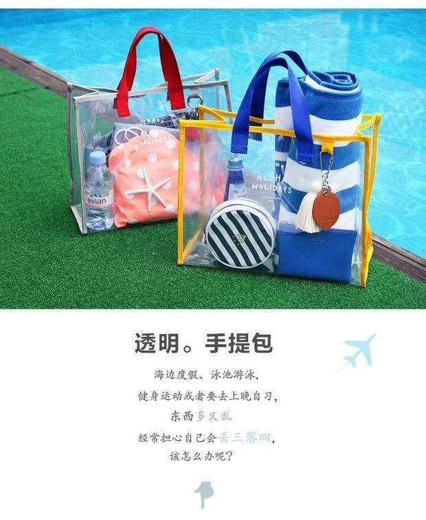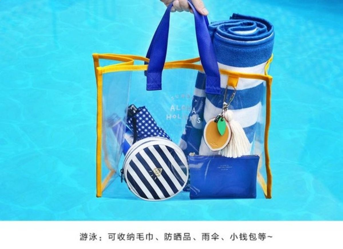 大容量果凍透明沙灘包pvc防水溫泉收納遊泳包手提袋購物袋