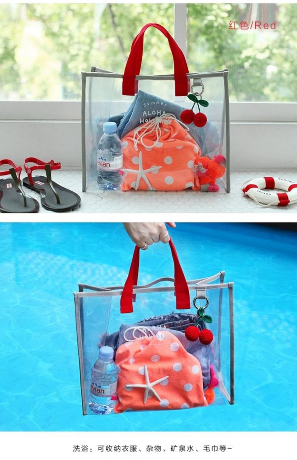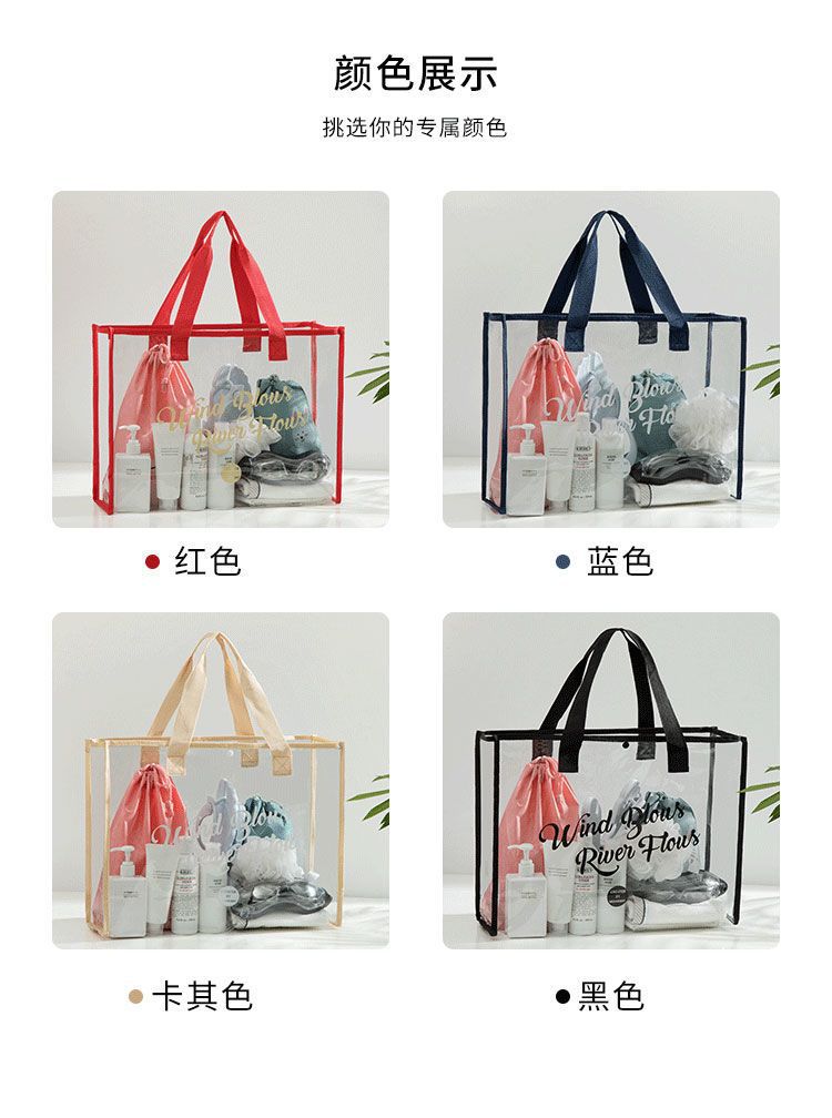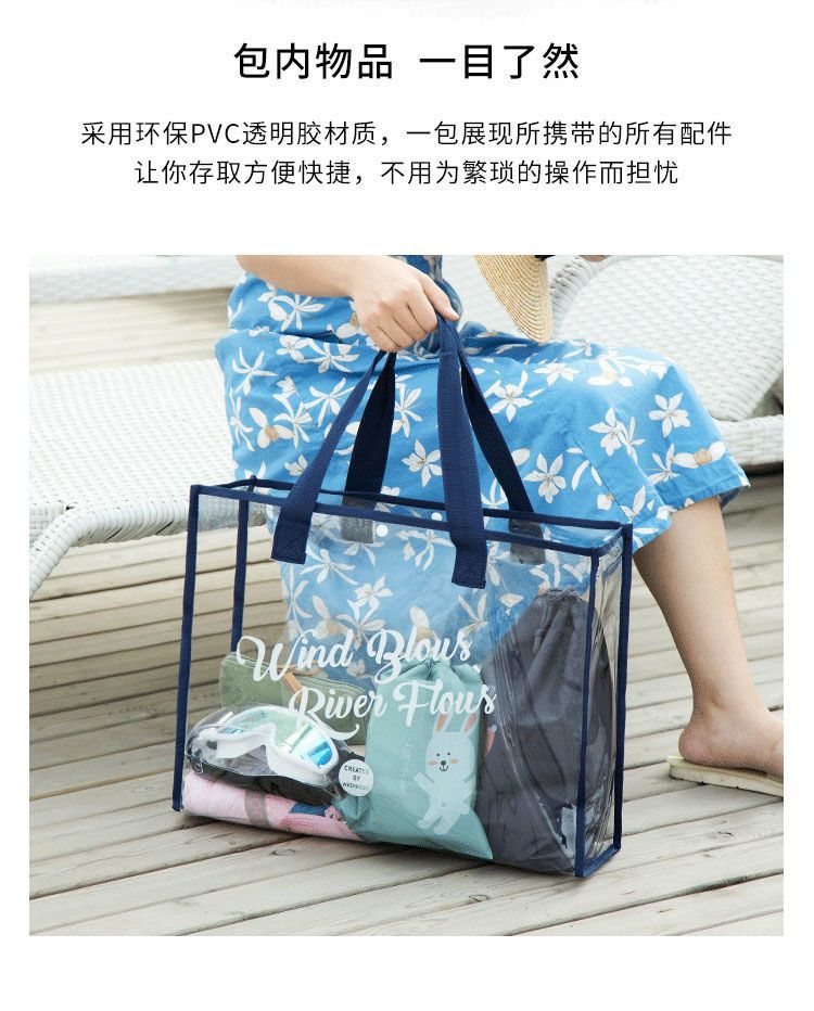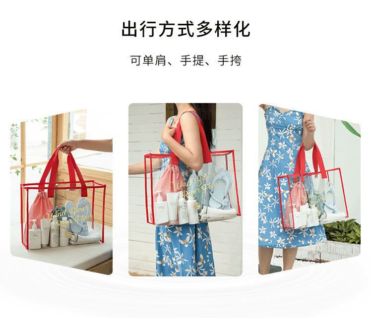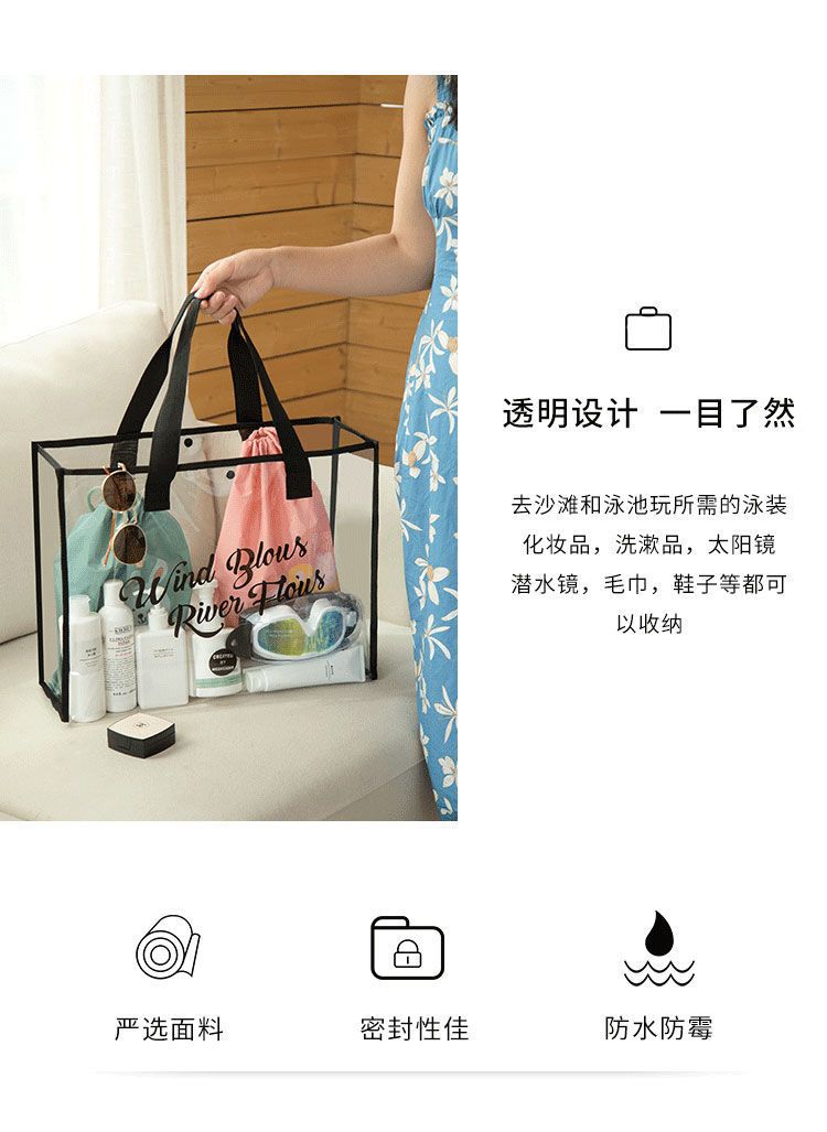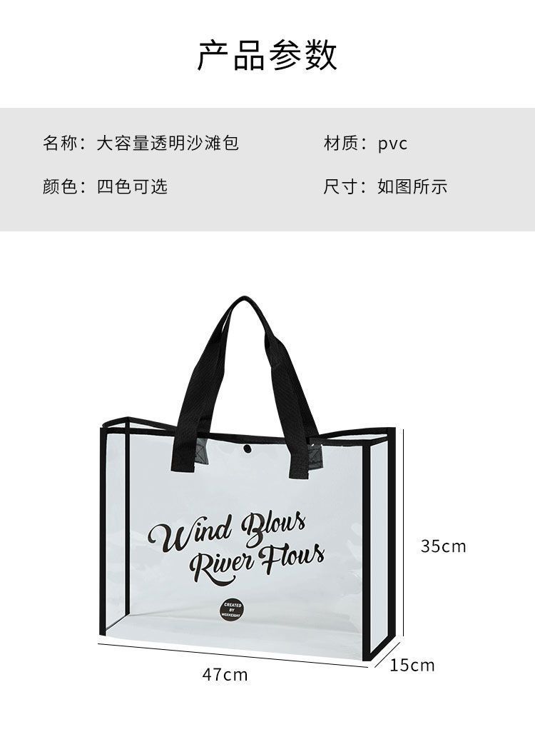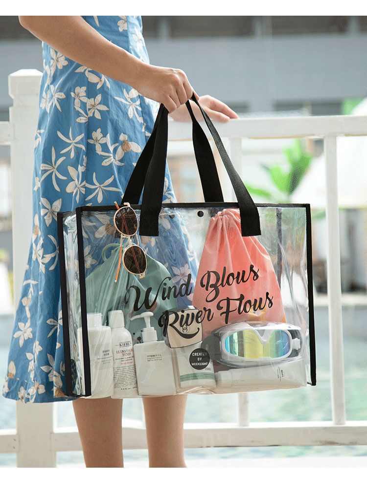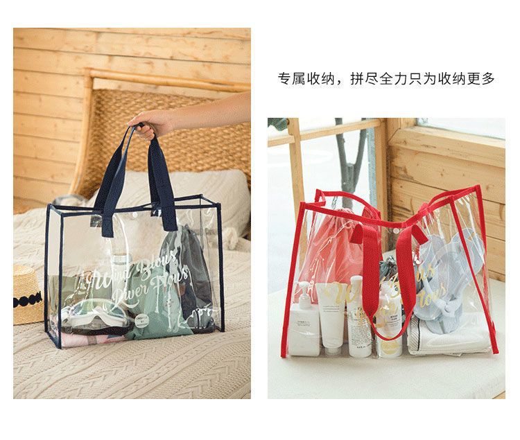 大容量果凍透明沙灘包pvc防水溫泉收納遊泳包手提袋購物袋