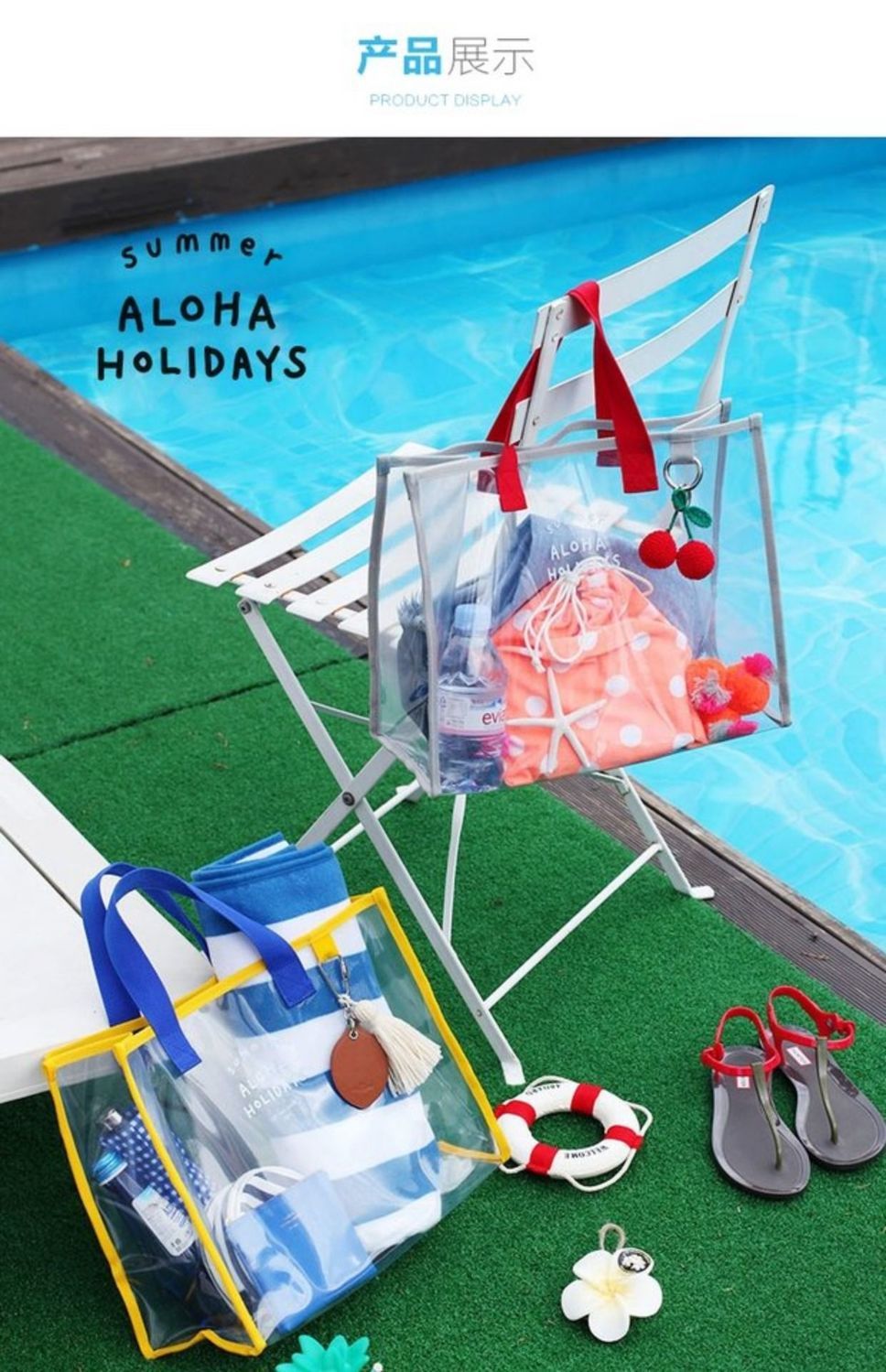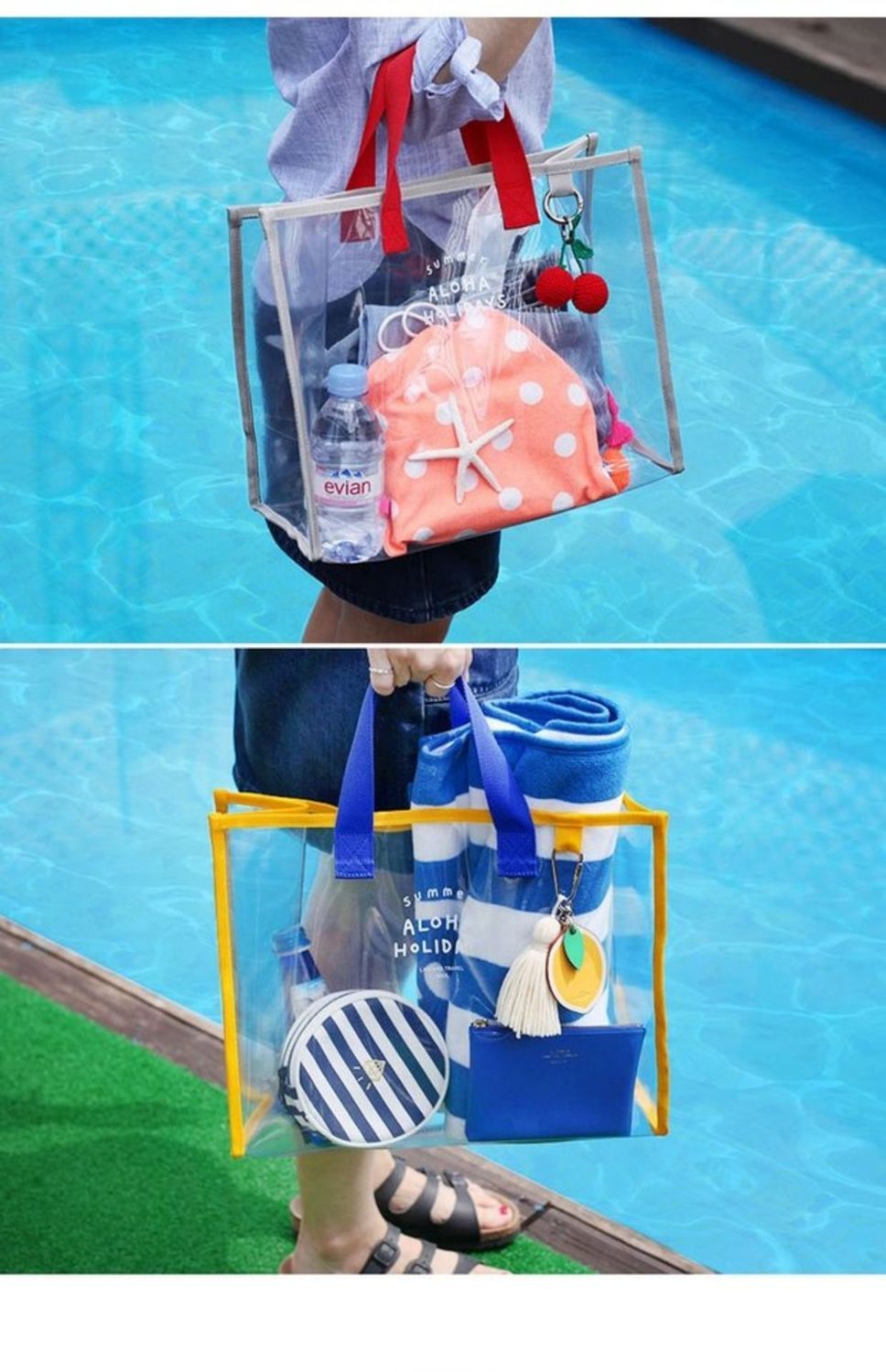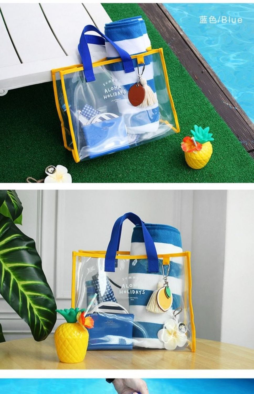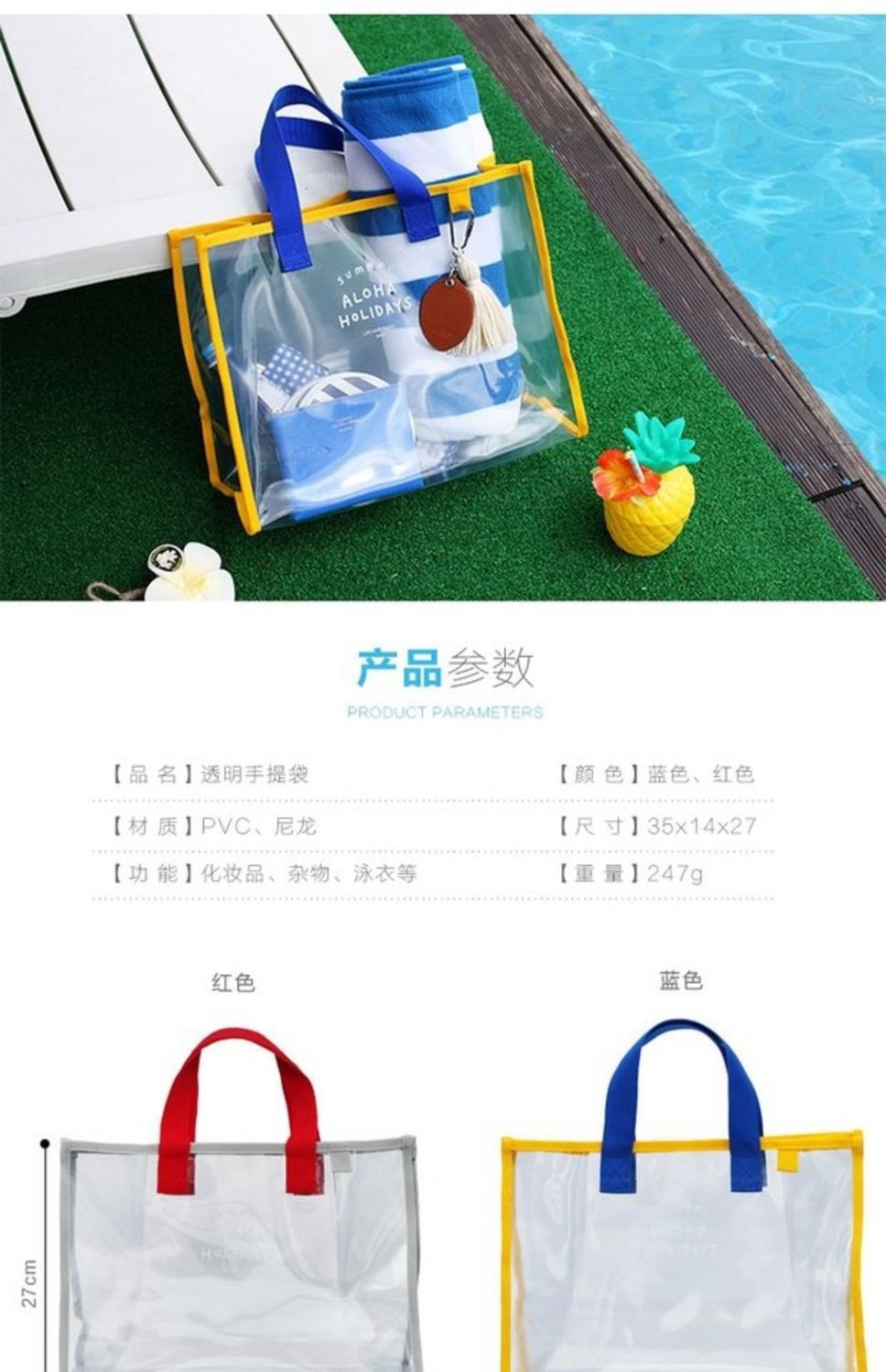大容量果凍透明沙灘包pvc防水溫泉收納遊泳包手提袋購物袋