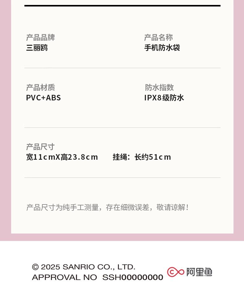 | 顔色 | 【1件裝】美樂蒂★滑蓋密封款【8級防水丨360°高清拍照】23.8*11.7cm |