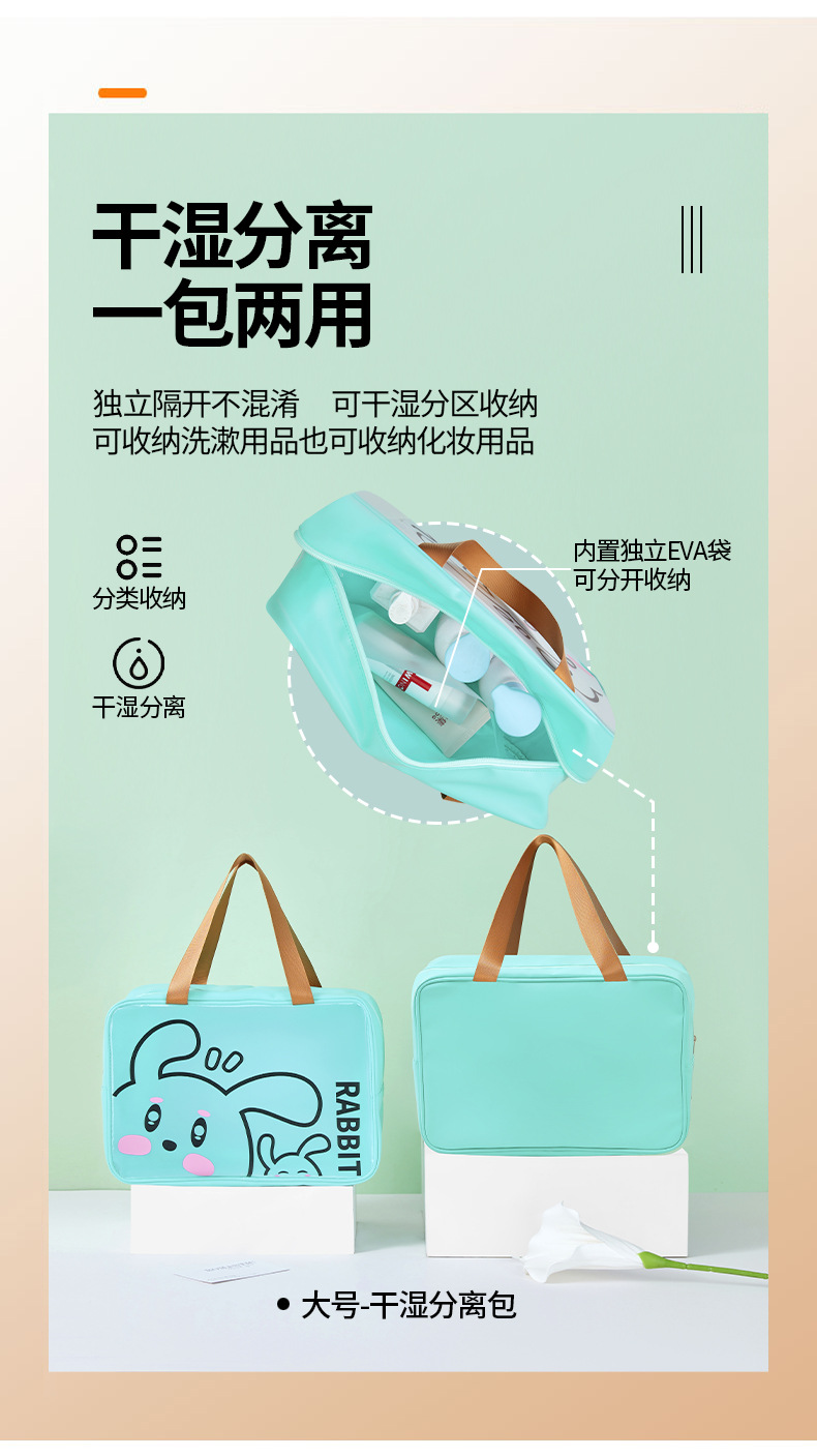 卡通防水化妝包收納袋大容量透明洗漱包乾濕分離旅行化妝品收納包